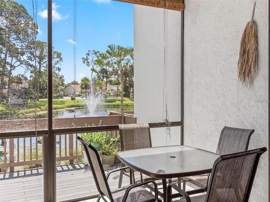 LOWEST PRICED IN ALL OF BIRD BAY!!Beautiful unit with sweeping views of the lake. 1 bedroom, 1 bath unit located in Bird Bay Village. The condo is situated on the ground floor with extended deck off the patio. The kitchen is located at the front of the unit with several of cabinets for storage. The living area offers sweeping lake views, and a large screened lanai overlooks the pond with a fountain. The lanai is an excellent place to enjoy a card game, bird watching, morning coffee, or cocktails. The laundry closet includes a full-size washer and dryer. The primary suite is spacious and includes a walk-in shower, slider out to lanai, and his/her closets. There is plenty of storage available, including a storage space in the foyer, in the carport, and a covered carport space. Bird Bay is a resort-style community with mature landscaping and endless amenities, including pickle ball courts, 4 pools, tennis courts, shuffleboard, a library, meeting room, and fitness room. The location is ideal, as it is only 5 minutes away from Downtown Venice shopping, restaurants, and beautiful Venice Beach.