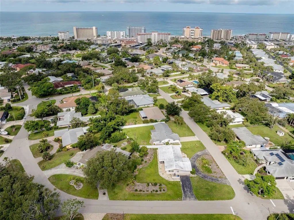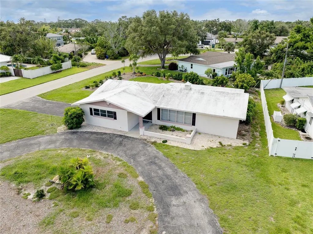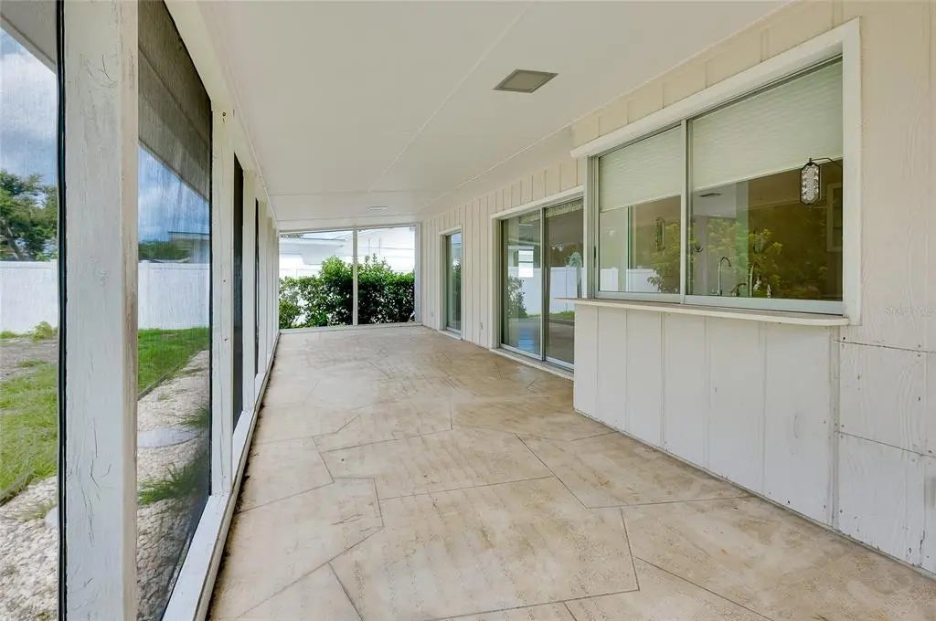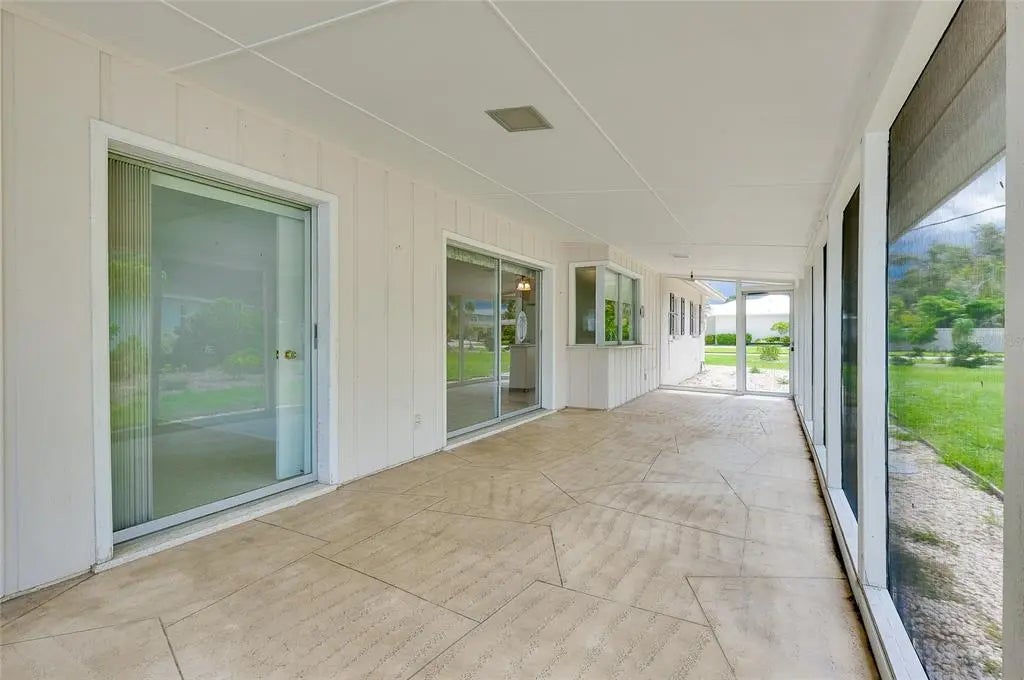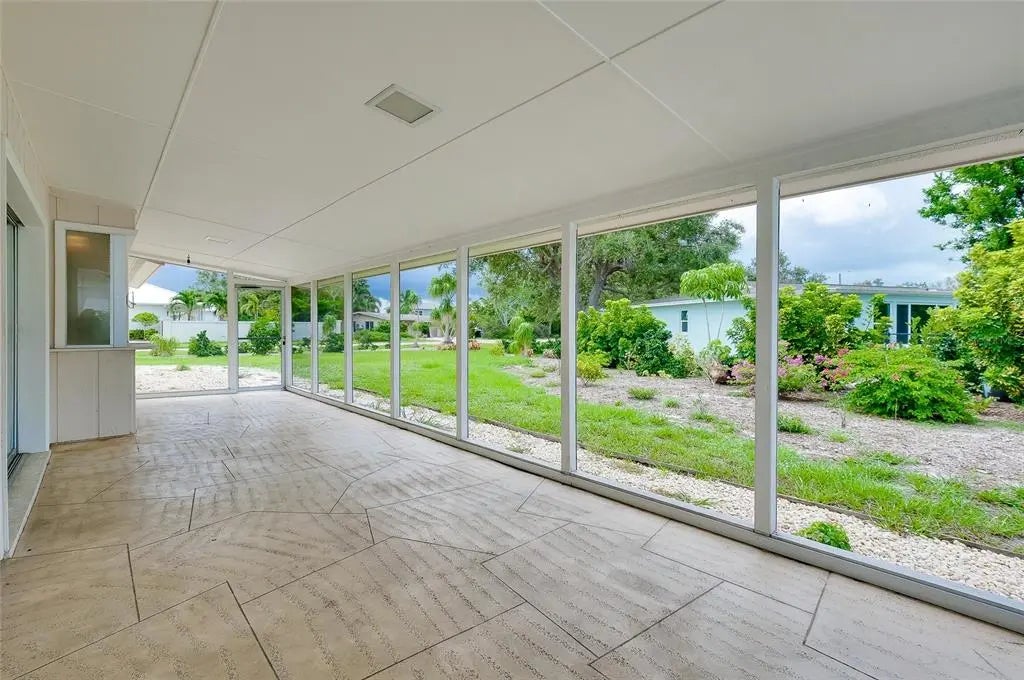 Under contract-accepting backup offers. CHARMING COASTAL HOME ON RARE OVERSIZE VENICE ISLAND CORNER LOT: Nestled away on the desirable north side of Venice Island, this charming 2-bedroom, 2-bath block home sits on a rare oversized corner lot with over 12,500 square feet of land—offering both space and opportunity in one of the island’s most sought-after neighborhoods. Designed for functionality and future potential, the property affords a spacious side-entry two-car garage featuring its own dedicated driveway, complemented by a separate circular driveway out front, creating ample parking for residents and guests alike. Inside, the home boasts a large open kitchen complete with a movable central island, custom cabinet pullouts, and abundant counter space—ideal for cooking, entertaining, or casual gatherings. Pocket sliding doors open to a generous size screened lanai with stamped concrete flooring, seamlessly blending indoor and outdoor living. Whether you are enjoying a peaceful morning coffee or hosting friends for a sunset gathering, the lanai offers the perfect space to relax and envision future enhancements such as a pool, spa, or outdoor kitchen. Showcasing a split-bedroom layout, the floorplan ensures privacy, with both bathrooms featuring tiled showers and ample space. The home is equipped with a 2019 HVAC system and offers just under 1,300 square feet under air, providing a cozy and efficient floorplan that is move-in ready or ready for your personal updates. Located just a short stroll from West Venice Avenue, this home places you minutes from boutique shopping, fine dining, seasonal festivals, and Venice’s vibrant farmers market. The Gulf beaches, known for their soft sand and legendary shark teeth, are just down the road, offering four miles of breathtaking coastline to explore. Whether you are seeking a full-time residence, winter escape, or a blank canvas for your dream coastal retreat, this property delivers the lot size, location, and lifestyle that make island living so exceptional.