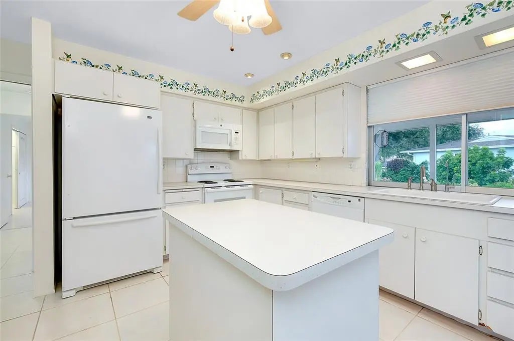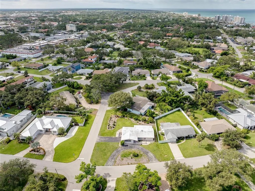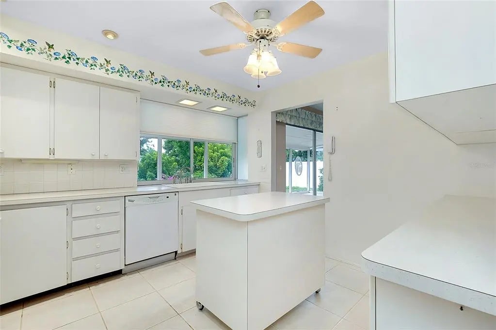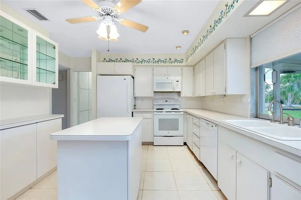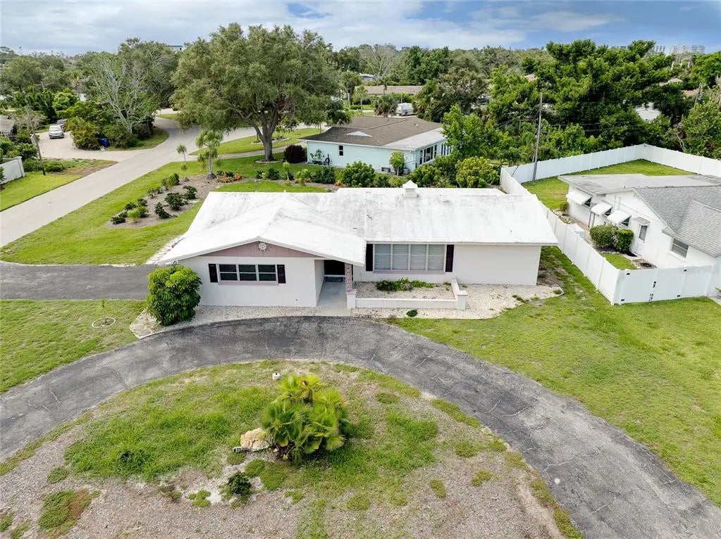 Under contract-accepting backup offers. CHARMING COASTAL HOME ON RARE OVERSIZE VENICE ISLAND CORNER LOT: Nestled away on the desirable north side of Venice Island, this charming 2-bedroom, 2-bath block home sits on a rare oversized corner lot with over 12,500 square feet of land—offering both space and opportunity in one of the island’s most sought-after neighborhoods. Designed for functionality and future potential, the property affords a spacious side-entry two-car garage featuring its own dedicated driveway, complemented by a separate circular driveway out front, creating ample parking for residents and guests alike. Inside, the home boasts a large open kitchen complete with a movable central island, custom cabinet pullouts, and abundant counter space—ideal for cooking, entertaining, or casual gatherings. Pocket sliding doors open to a generous size screened lanai with stamped concrete flooring, seamlessly blending indoor and outdoor living. Whether you are enjoying a peaceful morning coffee or hosting friends for a sunset gathering, the lanai offers the perfect space to relax and envision future enhancements such as a pool, spa, or outdoor kitchen. Showcasing a split-bedroom layout, the floorplan ensures privacy, with both bathrooms featuring tiled showers and ample space. The home is equipped with a 2019 HVAC system and offers just under 1,300 square feet under air, providing a cozy and efficient floorplan that is move-in ready or ready for your personal updates. Located just a short stroll from West Venice Avenue, this home places you minutes from boutique shopping, fine dining, seasonal festivals, and Venice’s vibrant farmers market. The Gulf beaches, known for their soft sand and legendary shark teeth, are just down the road, offering four miles of breathtaking coastline to explore. Whether you are seeking a full-time residence, winter escape, or a blank canvas for your dream coastal retreat, this property delivers the lot size, location, and lifestyle that make island living so exceptional.