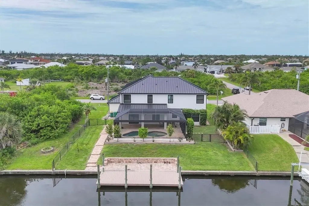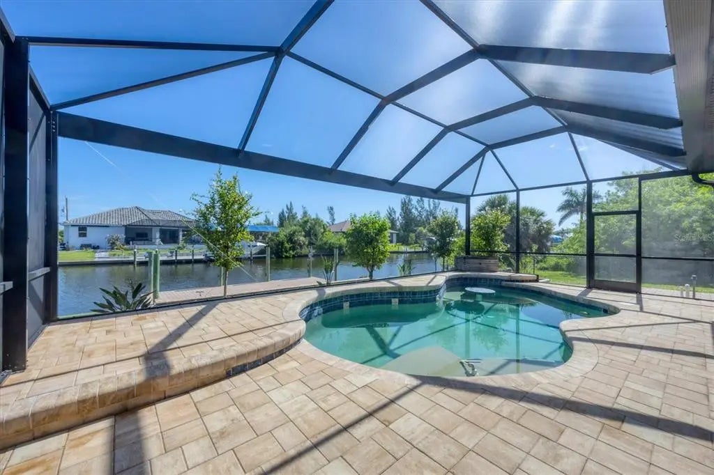 MUST SEE TO APPRECIATE THIS WATERFRONT HOME. You'll be thankful for the upgrades/updates all since 2023 - New 24 gauge metal roof, impact windows/doors, garage door, HVAC, pool cage, LVP flooring in all bedrooms, wood plank look tile other areas, spray foam insulation in attic (seller's says reduced elec. bill $100), It feels like home as soon as you step through the custom double door entry of the WATERFRONT, 4 bedroom, 3 CAR GARAGE home! Located in sought after Sec 93 of South Gulf Cove. Noticing first the custom designed Italian glass light in foyer, wood plank look tile on the diagonal throughout the downstairs, custom updated kitchen with wood cabinets, granite counters and spacious island with breakfast bar fully applianced including commercial fridge/freezer. Directly off of kitchen is dining room and at front of home formal living room. From kitchen you'll overlook your large family room with sliders to pool and lanai. Rounding out the practicality of the downstairs is the 1/2 bath at hallway from foyer to kitchen. Talk about great home for family or large gatherings, this one more than fits the bill. Up the beautiful redone staircase you'll find the primary suite with organizer walk in closet and en suite bath that is bright and beautiful walk in shower w/frameless glass door, dual sinks and private water closet and wood plank look tile on diagonal. The remaining 3 bedrooms are situated nicely around the staircase, two with built in closets and one with walk in closets. At the very front of the home upstairs is a large "bonus" room, perfect for media room, game room, second family room, endless choices. Also on second floor where it belongs for ease of use, is the laundry room that includes utility sink. Lanai has new screen cage with Picture window screen facing your waterfront canal and dock, that will take you out to the Lagoon if you just want a quick fishing trip or through the lock onto the Myakka River, then Charlotte Harbor or to the Intracoastal and Gulf of Mexico. Desirable South Gulf Cove waterfront community offers a park, boat launch (for a fee) walking paths and so much more, it is also appx. 15-20 minutes to Boca Grande beaches and Englewood (Manasota Key) beaches as well as 10-15 minutes to golf courses in the area. If you're looking for YOUR Florida paradise with lots of room for family and friends, do yourself a favor and call to see this one now!