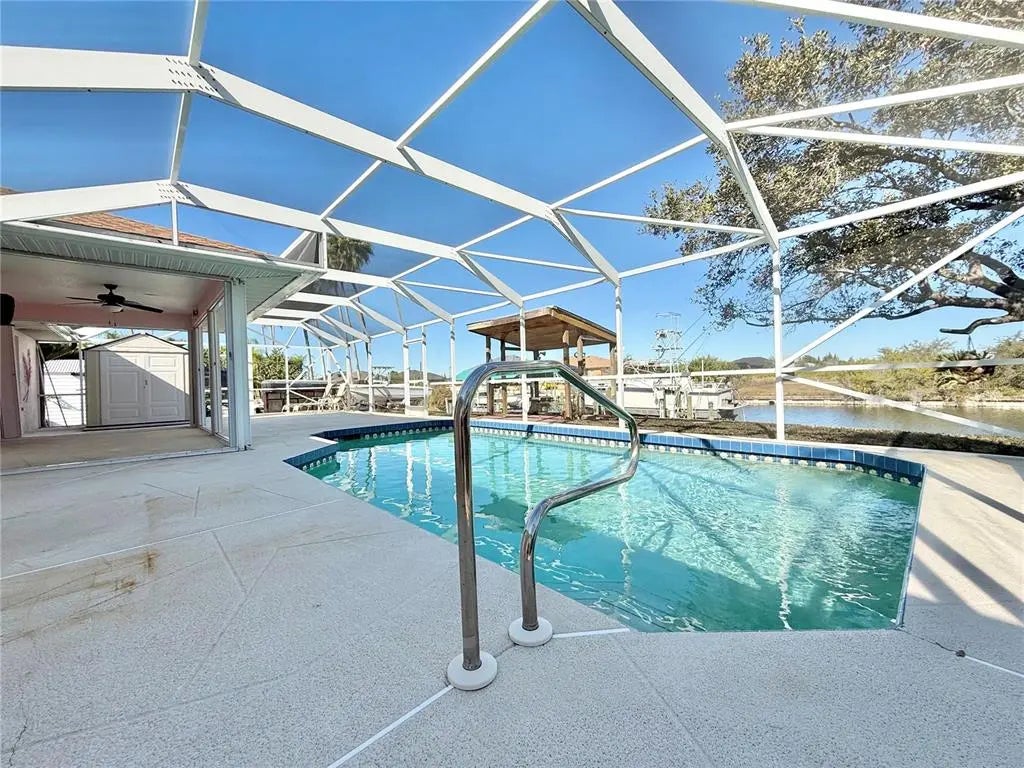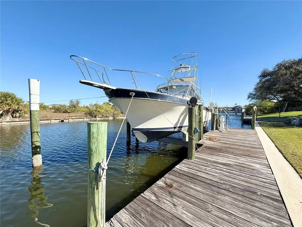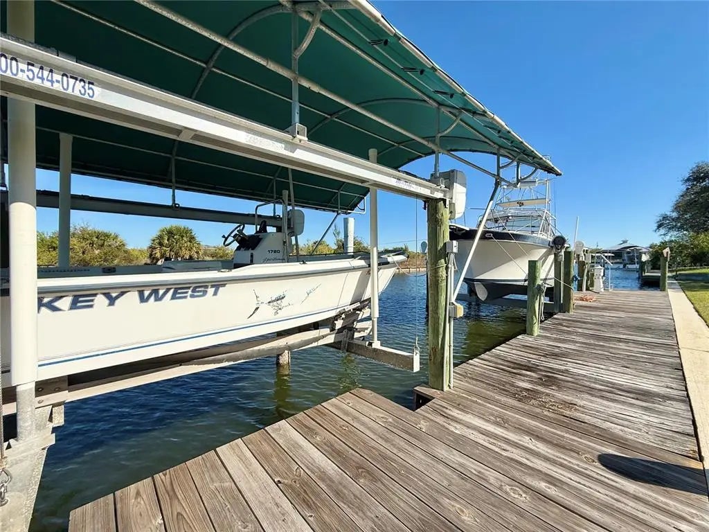 Welcome to your saltwaterfront Florida paradise — offering quick sailboat Gulf access, an included extra ½ lot, and a heated saltwater pool, all in one exceptional property. This beautifully maintained 3-bedroom, 2-bath, 2-car garage Quality Homes built Hawaii model delivers the lifestyle buyers dream about but rarely find — wide-water views, dual boat lifts, and room to expand. Boaters will love the private dock with two lifts, including a 20,000-lb lift for up to a 40’ vessel and a 5,000-lb covered lift for your fishing boat, providing effortless access to the Gulf of Mexico in minutes. The additional half lot creates endless possibilities — build a detached garage or workshop, add RV or boat storage, or simply enjoy unmatched privacy and outdoor space. Inside, the home features an open and airy layout with vaulted ceilings, abundant natural light, and tranquil water views throughout. The spacious living area flows seamlessly into the dining room with French doors overlooking the pool and canal, perfect for entertaining or relaxing after a day on the water. The kitchen offers stainless steel appliances, generous cabinetry, breakfast bar seating, and a sunny eat-in nook — all designed to capture the beauty of waterfront living. Your primary suite is a peaceful retreat with two walk-in closets, a spa-style bath with jacuzzi tub, and direct pool access for true indoor-outdoor Florida living. Two additional bedrooms provide flexible space for guests, family, or a home office. Recent updates include a NEW ROOF (2023), water heater (2024), accordion hurricane shutters, pool pump, 2024 survey, irrigation well, and two storage sheds. Located in the highly desirable South Gulf Cove waterfront community, residents enjoy optional HOA amenities for just $120/year, including an air-conditioned clubhouse, tiki huts, and social events. Nearby parks feature walking trails, boat ramps, fishing docks, picnic areas, and playgrounds. Just minutes from world-class fishing, championship golf courses, shopping, dining, and the pristine beaches of Boca Grande and Manasota Key, with access to over 55 miles of navigable waterways. This is more than a home — it’s the Florida lifestyle you’ve been waiting for. Bring your vision to this property and create your ideal dream home, be sure to schedule a showing today!