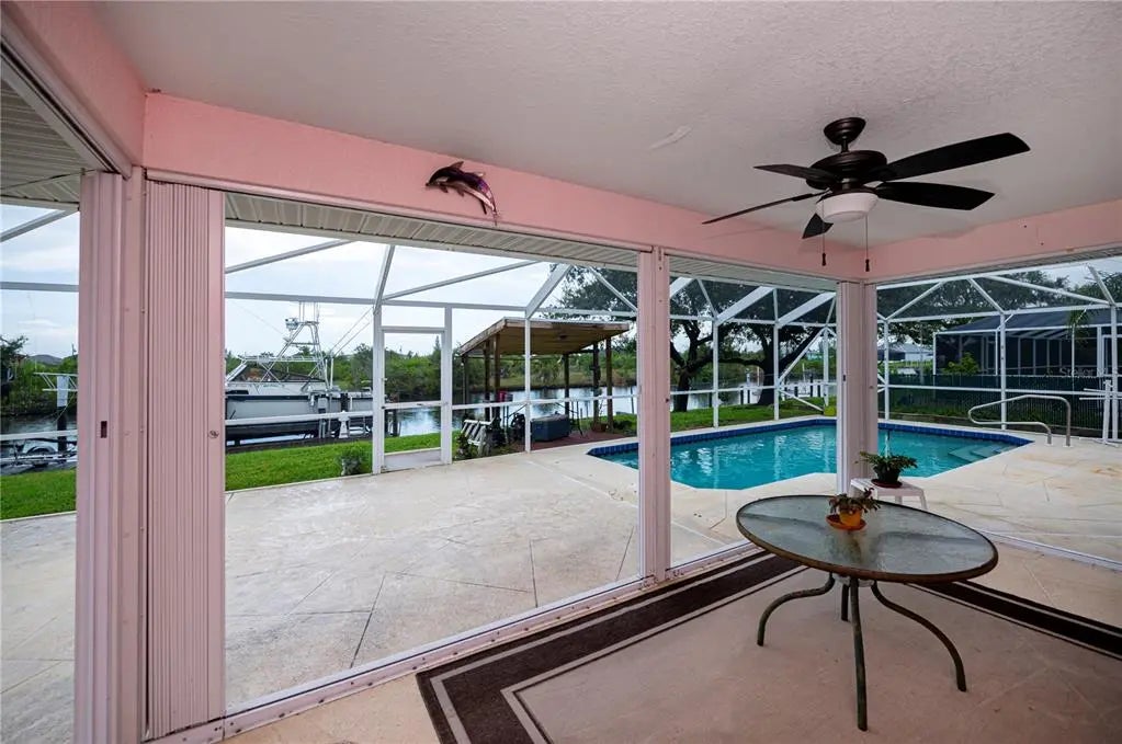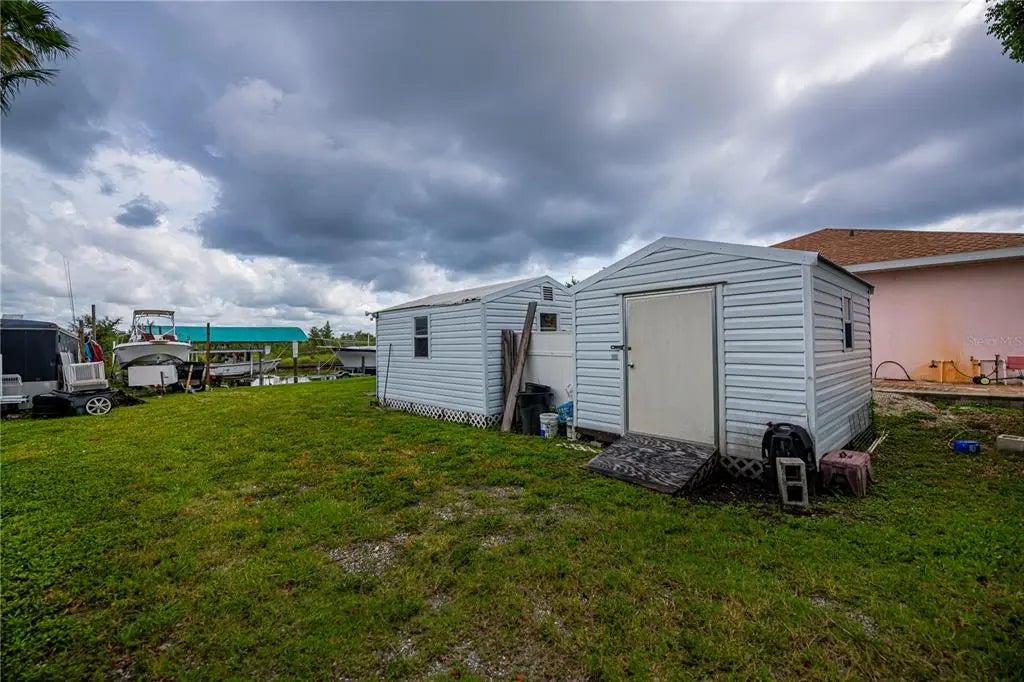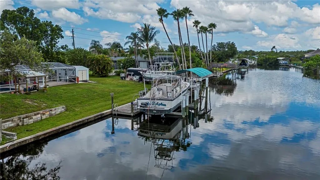 Welcome to your WATERFRONT dream Florida lifestyle! This fabulous 3/2/2 QUALITY HOMES built Hawaii model split-plan with SALTWATER POOL home offers style, comfort, and stunning water views—right on the canal with room for two boats and TWO lifts (20k & 5k lb). PACKED WITH CURB APPEAL, the home features popular Bahama shutters, concrete curbing, a privacy-screened garage, covered front entry, and dual driveways for extra parking. Inside, you'll be greeted by abundant natural light streaming through sunburst windows, vaulted ceilings, plant shelves, and a bright, open layout. The spacious living room is perfect for relaxing or entertaining, while the separate dining area—with beautiful French doors overlooking the heated saltwater pool—brings the outdoors in. The kitchen is a cook’s delight, with stainless steel refrigerator, ample cabinetry, a breakfast bar, and an eat-in nook with breathtaking canal and pool views.The master suite is a true retreat, offering two generous walk-in closets and a spa-like ensuite bathroom with a jacuzzi tub and convenient pool access. Bedroom two faces the front of the home, while bedroom three overlooks the sparkling pool, making it ideal for guests or a home office.Practical updates set this home apart, including a roof that's just two years old, easy-to-use accordion hurricane shutters, 2025 water heater, new pool pump,2024 disposal,2024 survey, two storage sheds, and a well for cost-effective lawn watering. The privacy-screened garage includes a fridge that stays with the home, and thoughtful landscaping adds to the inviting curb appeal.Relax in the heated saltwater pool, soak in panoramic water views, or launch your boats right from home with two available lifts. Seller including 5k watt generator,Toro zero turn mower ,33ft California cruiser sports fisherman,17 ft key west boat w trailer,228 intrepid on trailer...wow! OPTIONAL HOA, CITY WATER & CITY SEWER! South Gulf Cove is a premier deed restricted community featuring a voluntary HOA with remarkably low annual dues of only $120.As an HOA member, you'll enjoy access to the air-conditioned clubhouse, complimentary Wi-Fi, ping pong, darts, cornhole, horseshoes, tiki huts, and discounted clubhouse reservations. Several community parks are nearby, offering walking paths, boat launch, fishing docks, picnic shelters, BBQ grills, and playgrounds.SGC is only minutes away from WORLD CLASS FISHING, GOLF COURSES, shopping, dining, SW FL beaches in Boca Grande and Manasota Key plus access to over 55 miles of SGC waterways leading to Charlotte Harbor, Myakka River & the Gulf.This move-in ready property is perfectly designed for comfort, style, and the quintessential Florida lifestyle—all in a highly sought-after waterfront location. Schedule your tour today and discover the magic of exceptional Gulf access living!