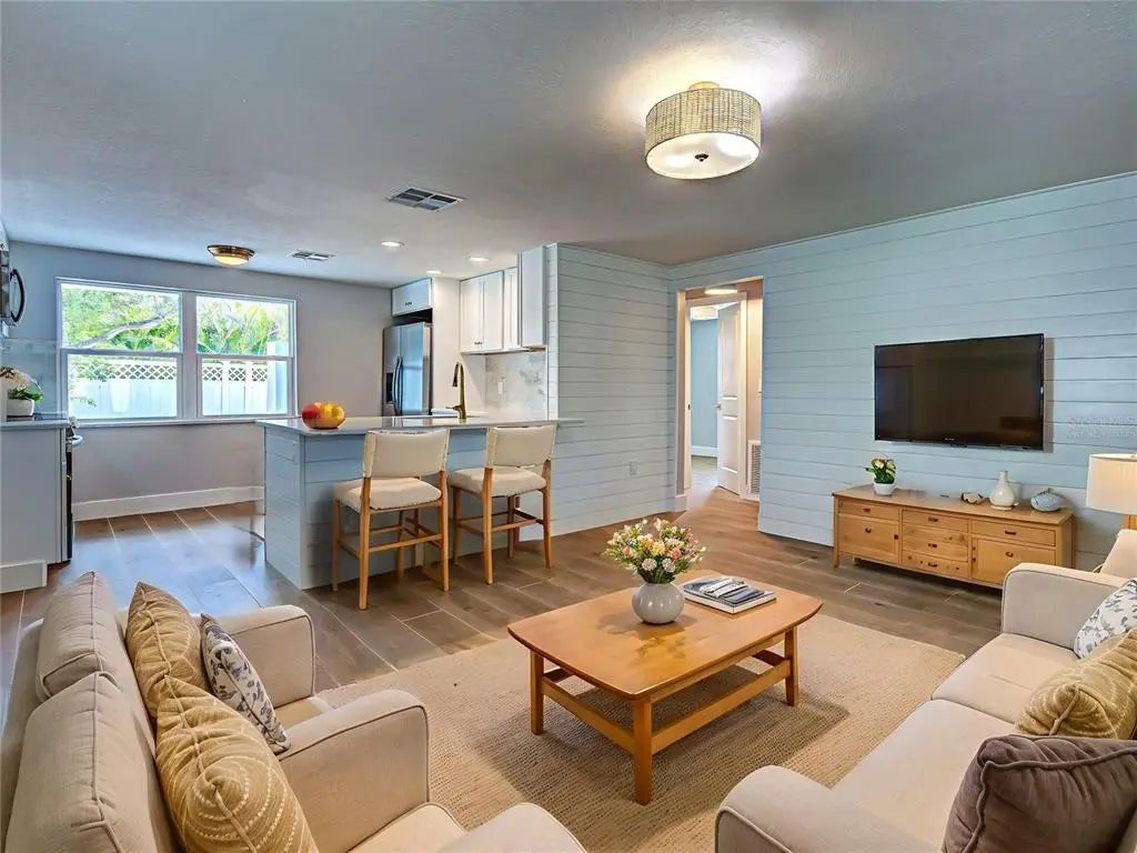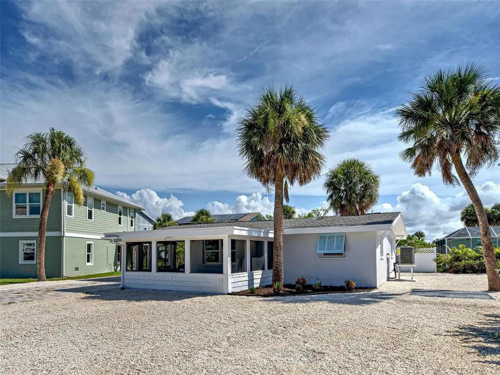 One or more photo(s) has been virtually staged. MOVE-IN READY BEACH HOUSE! NO HOA—NO PROJECTS—JUST PURE PARADISE! Welcome to your beautifully updated beach bungalow on Manasota Key! This coastal gem has been thoughtfully renovated from top to bottom with both style and safety in mind. All the big-ticket items are done—impact windows and doors, new central A/C, new water heater, updated electrical panel, and all-new tile flooring throughout. Inside, you’ll love the shiplap accent wall that adds a cozy, coastal vibe, and the stunning kitchen with soft-close shaker cabinets, marble countertops, Carrara tile backsplash, and brand-new stainless steel appliances. The spa-like bathroom features a fully tiled shower with built-in nook, a large window, and sleek glass enclosure. Some photos have been virtually staged to help you imagine just how perfect this home can look when furnished—but you truly need to see it in person to feel the charm and quality throughout. Step outside to your spacious screened lanai, complete with paver flooring and a fun fandelier The low-maintenance yard is finished with shell gravel and includes a paver driveway and carport. Out back, rinse off in the outdoor shower after a beach day, and take advantage of the extra storage nook for chairs and gear. There's also a convenient washer/dryer hookup just off the kitchen door. This Beach Charmer is priced below 2023 prices and provides a great opportunity to really make some seasonal income when the snow birds and winter visitors flock back down in January! The beaches are still breathtaking, and this is a rare opportunity to become part of the island's bright future. Did we mention NO HOA fees?! Whether you're looking for a full-time escape, vacation home, or investment, this turnkey bungalow is your gateway to Gulf Coast living. Come claim your slice of paradise—it’s ready and waiting for you!