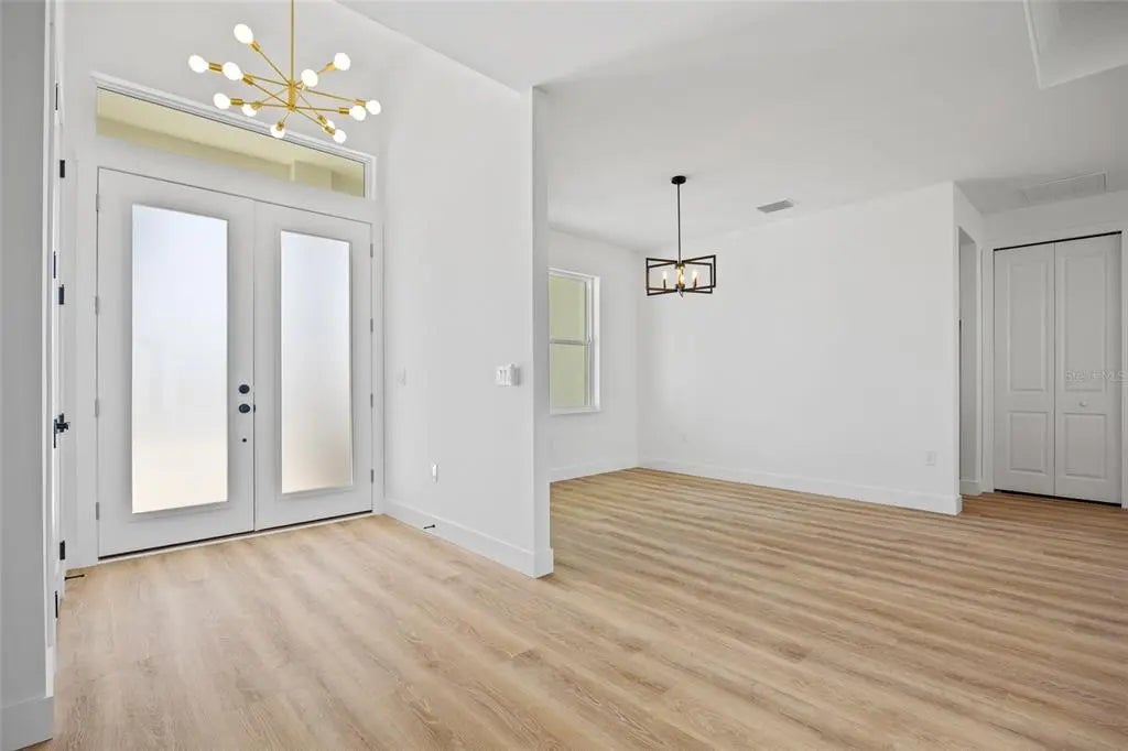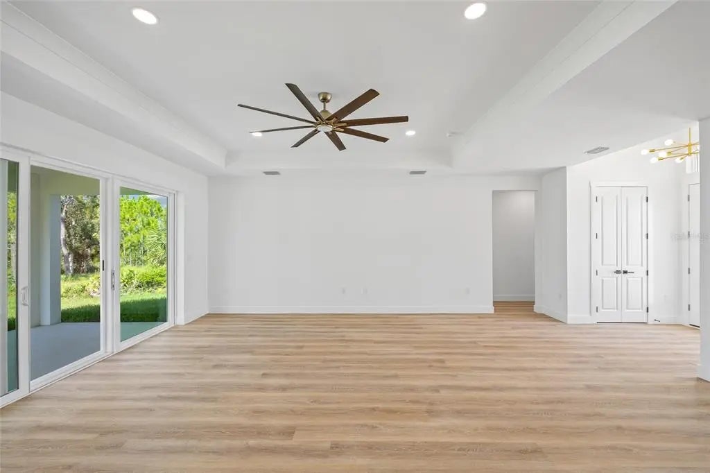 - Interior FeaturesCathedral Ceiling(s), Ceiling Fan(s), Crown Molding, High Ceilings, Kitchen/Family Room Combo, Living Room/Dining Room Combo, Open Floorplan, Primary Bedroom Main Floor, Split Bedroom, Stone Counters, Thermostat, Tray Ceiling(s), Walk-In Closet(s)