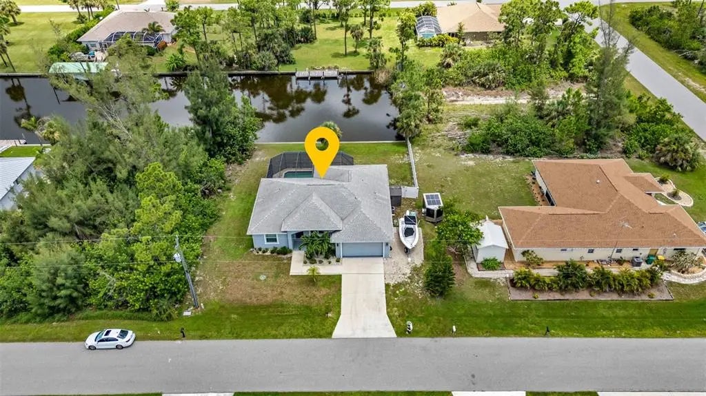 Welcome to 15040 Lyneburg Ave, a WATERFRONT POOL HOME BUILT IN 2017, featuring three bedrooms, two bathrooms, and a two car garage with just under 1700 square feet of living space! With modern touches you will also find a desired open & split floorplan with the main bedroom suite on the right side of the home, two bedrooms and bathroom on the left side, and the kitchen, dining area, and living room directly in the middle! One you exit through the sliding glass doors you will find a screened-in lanai with a heated pool saltwater pool with great views of the large 100ft wide canal! Some of the great updates in this home include HURRICANE IMPACT WINDOWS, NEW AC 2022, NEW POOL PUMP & HEATER 2023, EXTERIOR PAINT 2025, a GENERATOR PLUG and BOAT PARKING with several public ramps just minutes away! Other great features include tile flooring throughout, tray ceilings in the living room and main bedroom, granite counters in the open kitchen and bathrooms, and plantation shutters. This nicely updated home is located on a saltwater canal with SAILBOAT ACCESS in the popular waterfront community of South Gulf Cove. If you don’t have a sailboat that’s okay, this just means you have no bridges between your home and the open waters of the Myakka River, which then leads to Charlotte Harbor and the Gulf! Imagine hopping in your kayak, jet ski, or boat and heading out for a day on the water. From fishing to cruising, the options are endless with your own waterfront property! Here you have a great home in a great location with Boca Grande and its beautiful beaches less than 10 minutes away! Don’t forget to check out the VIRTUAL TOUR and 3D FLOORPLAN to see more about this wonderful home before you call your favorite real estate agent to schedule a personal showing!