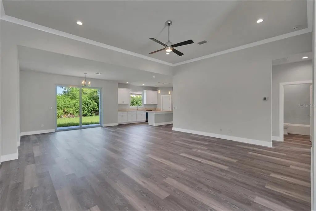 - Interior FeaturesCeiling Fan(s), Eating Space In Kitchen, High Ceilings, Kitchen/Family Room Combo, Living Room/Dining Room Combo, Open Floorplan, Solid Surface Counters, Solid Wood Cabinets, Stone Counters, Walk-In Closet(s), Window Treatments