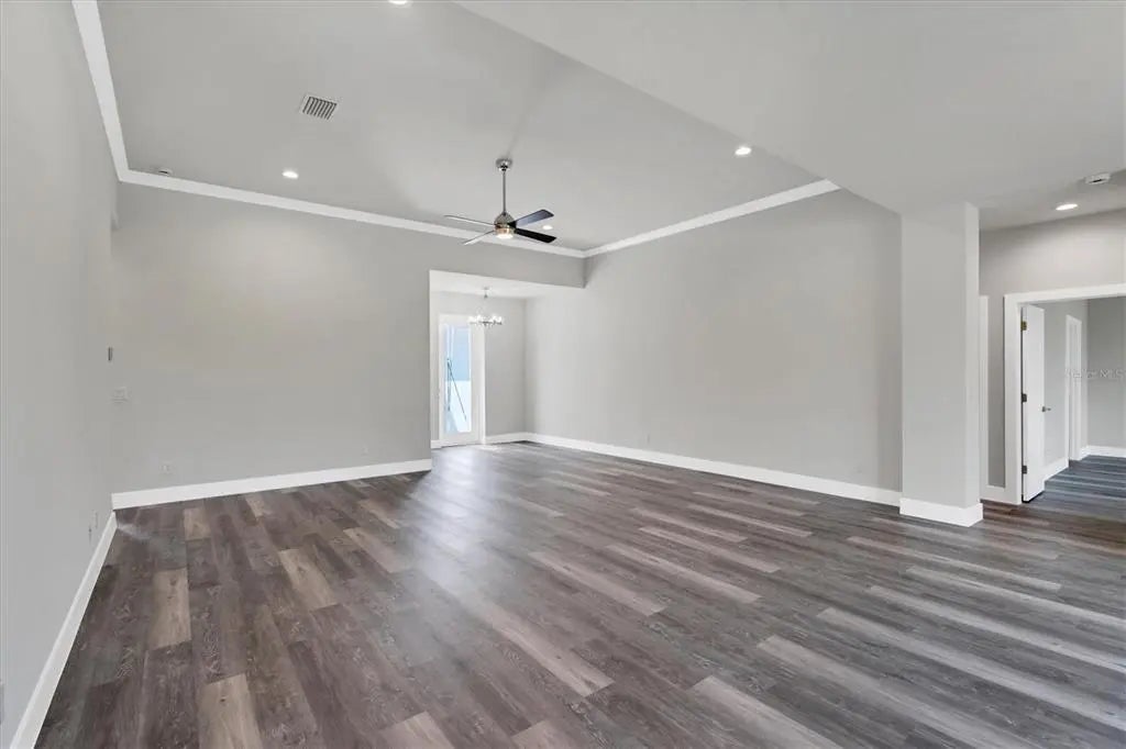 Welcome to this beautiful custom built home, Construction has been completed. Upon entering the home you will notice the high ceilings which are throughout the entire home. This is an awesome home with high ceilings in every room, and an open floor plan. The main living area has crown molding and gives plenty of space for all your furniture. There are tray ceilings in the main bedroom. The kitchen and bathrooms have custom cabinets with quartz counters. Even the closets have wood shelves. Beautiful luxury vinyl plank flooring is throughout. Hurricane impact windows and doors which will help with insurance costs and protection. This home has an additional room that could be an office, library, exercise room or whatever you want. The house was furnished to be used as a rental. Some of photos are prior to rental. The back yard has plenty of room for a pool. Great location, close to the beaches, fishing, shopping, and restaurants.