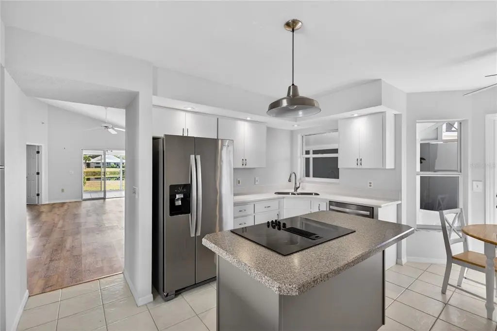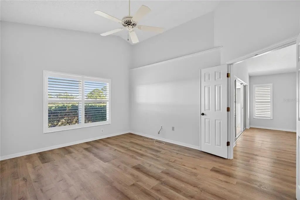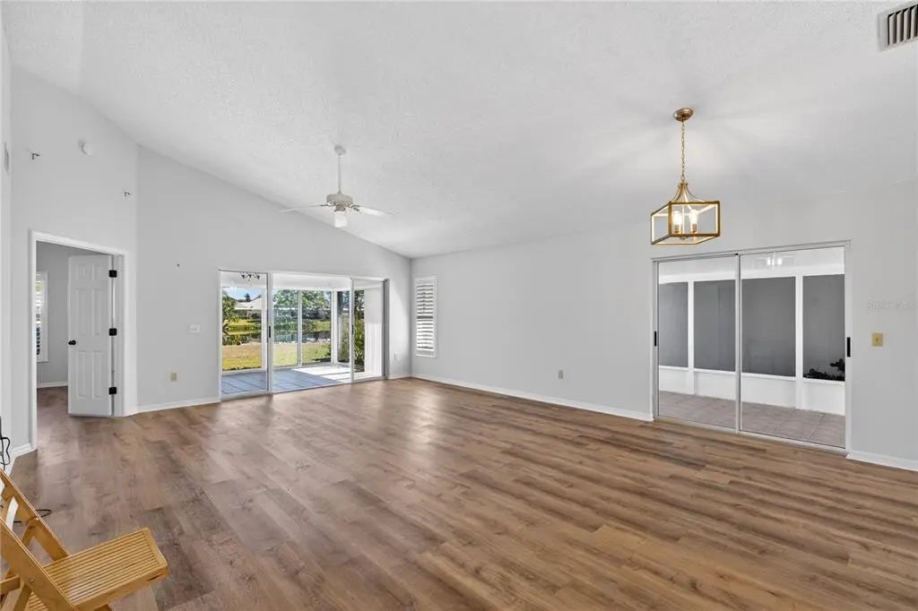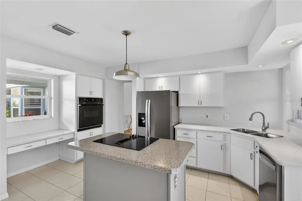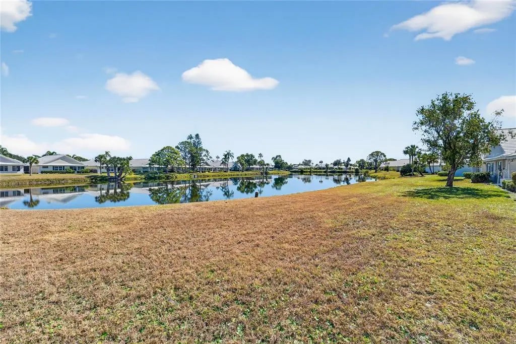 Under contract-accepting backup offers. Welcome to this inviting residence in the highly sought-after community of Harrington Lake at Plantation Golf & Country Club. This spacious two-bedroom, two-bath villa with a two-car garage offers an ideal combination of comfort, convenience, and scenic views, making it a wonderful opportunity for year-round living or a seasonal retreat. Recent updates include a new roof in 2024, new ac in 2021, new water heater in 2025. As you step inside, you are welcomed by soaring cathedral ceilings that create an open and airy atmosphere. The main living areas feature durable laminate flooring that adds warmth and character, while the kitchen is finished with easy-to-maintain tile. Large windows allow natural light to flow throughout the home, enhancing its bright and welcoming appeal. The kitchen is designed with both functionality and style in mind. White cabinetry provides a crisp, clean backdrop, complemented by extensive countertop space that makes cooking and entertaining a breeze. The kitchen is equipped with a built-in wall oven and an electric cooktop situated on the island, offering convenience for meal preparation. In addition, there is a built-in desk, perfect for keeping organized, and plenty of room to accommodate a breakfast table. Whether you’re enjoying a casual meal or preparing for gatherings, this kitchen is well-suited for a variety of needs. The primary suite is a peaceful retreat, complete with a walk-in closet that provides ample storage. The primary bathroom features dual sinks, a soaking tub, and a separate walk-in shower, creating a private space for relaxation and comfort. The guest bedroom and second full bathroom are equally well-appointed, ensuring that family and visitors feel right at home. This residence offers multiple spaces to enjoy the Florida lifestyle. A Florida room provides additional living space under air with tranquil views of the pond, while the separate screened lanai allows for comfortable outdoor relaxation. From morning sunrises to evening sunsets, the setting offers a beautiful backdrop for daily living. The home is also topped with a tile roof, adding to its curb appeal and long-lasting durability. Harrington Lake is part of the master-planned Plantation Golf & Country Club, one of Venice’s premier communities known for its picturesque lakes, manicured grounds, and friendly atmosphere. Residents enjoy access to a community pool, social activities, and beautifully maintained common areas. Membership at Plantation Golf & Country Club is optional and offers a wide range of amenities, including championship golf courses, tennis, pickleball, fitness facilities, dining, and a full calendar of events. With its convenient location, the community is just minutes from shopping, dining, Gulf beaches, and all that Venice has to offer.