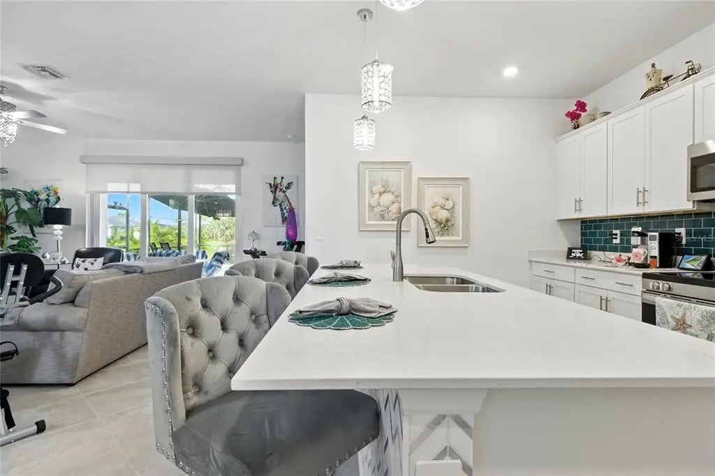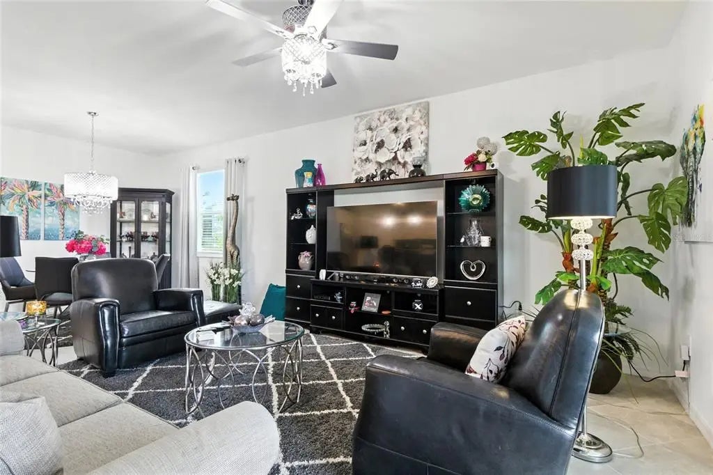***Modern Elegance Meets Outdoor Bliss*** Welcome to this stunning 4-bedroom, 3-bathroom retreat where style, comfort, and functionality converge. Nestled in a beautifully landscaped setting, this home offers a seamless blend of indoor sophistication and outdoor serenity. The outside driveway and grass have been treated multiple times. The owner has ensured every detail is cared for to perfection. Step into an open floor plan, where custom lighting accents every space with warmth and character. Crisp white walls throughout provide the perfect canvas for your personal style. Durable tile flooring flows effortlessly from room to room, offering both elegance and easy maintenance. The kitchen features a beautiful backsplash and rechargeable motion-activated under-cabinet lighting, adding both function and ambiance. A sleek sliding door opens to the pool deck, perfect for enjoying year-round relaxation in your screened-in pool and spa. Ornamental landscaping offers privacy and tranquility. There is a reinforced pet-resistant bottom screen for added durability and peace of mind. The expansive pool deck, complete with heated pool and spa, is ideal for entertaining, sunbathing, or simply unwinding after a long day. Motion-activated lights on the pool cage beams, create a beautifully lit outdoor retreat in the evenings. Four spacious bedrooms offer flexibility for family, guests, or a home office. Three well-appointed bathrooms feature modern fixtures and thoughtful design. This home is more than just a place to live—it’s a canvas for your lifestyle. Whether you're hosting weekend gatherings or savoring quiet mornings by the pool, every detail has been curated for comfort and inspiration. *CITY WATER & NOT IN A FLOOD ZONE*