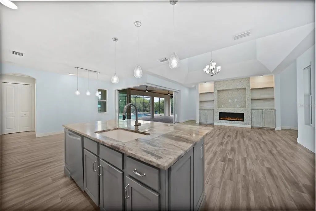 - Interior FeaturesCeiling Fan(s), Kitchen/Family Room Combo, Open Floorplan, Split Bedroom