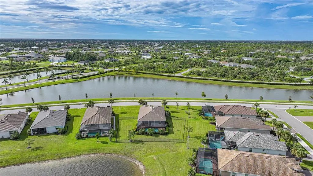 BEST VALUE IN HARBOR WEST! Enjoy the largest interior lot in the community that is completely FENCED and has a HUGE BACKYARD. This 4-bedroom, 3-bathroom home boasts a HEATED POOL & SPA, an EXTENDED LANAI and an already large patio that is perfect for relaxing and enjoying the serene LAKE-VIEW while sitting by the pool. The home is fitted with IMPACT WINDOWS AND SLIDERS that grant FULL HURRICANE PROTECTION but also give you the benefit of never having to worry about putting up or taking down any hurricane shutters. Enjoy the convenience of a TILE ROOF that typically last much longer than a standard shingle roof and gives the home a Mediterranean style look. Inside you'll find a spacious open-floor plan with a split bedroom layout outfitted with 12x24 throughout the home and beautiful granite countertops across all of the countertops in both the kitchen and bathrooms. The charming upgraded white kitchen features a large island for an informal dining space, a large pantry, and stainless-steel appliances. The primary bedroom is ample in space and comes with two big-walk in closets. The primary bathroom comes complete with his and her sinks and a large shower with a Kohler Artifacts Hydro rail system with a rain head attachment or a handheld attachment for your showering pleasure. The 2nd bedroom is also very spacious and is positioned in a private part of the home away from the other bedrooms and comes with its very own on-suite bathroom. The front wing of the home comes with two more well-sized bedrooms that can be used for a variety of things besides just a bedroom, maybe a den, office, workout room, etc. The front wing comes with its own convenient bathroom. Great for guests or for quick use. The large laundry room is located just off the 2-car garage and is outfitted with 42' soft close cabinets. Underrated features include charming plantation shutters on the interior of all the windows, elegant lighting and upscale fans, Koehler faucets in master bathroom and matching towel and toiletry bars in all baths. The brick paver patio has been maintained and resealed to increase its longevity. The paver driveway is large and wraps around to the air handler. The home has a nice screened in entryway with decorative front shutters. The whole house has gutters around it. Gray plank tile throughout and a warm light neutral gray interior lends the perfect backdrop for your designer inspirations. This is located in Harbor West which is a GATED COMMUNITY with NO CDD FEES. The lawn Maintenace and irrigation is taken care of by the community. This property is not one that you'll want to miss. BE SURE TO VIEW THE 3D VIRTUAL TOUR ON ZILLOW. Don't forget the close proximity this property has to both Manasota Key Beach and Englewood Beach as well to Restaurants, bars, grocery stores, medical offices. Tampa Rays and Atlanta Braves play Spring Training nearby every year. You won't be disappointed with this located! This home has NEVER FLOODED, and a Survey and Elevation Certificate are available. Call your agent to book your showing today!