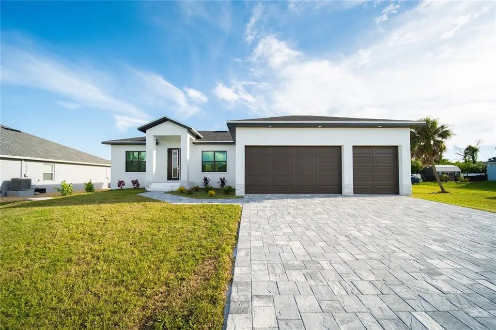 Welcome to your new custom-built home! This stunning residence blends modern elegance with thoughtful design, offering 3 bedrooms, 2.5 bathrooms, and a spacious 3-car garage. Step inside and enjoy the airy 10-foot ceilings in the living room and 9’4” ceilings throughout the rest of the home, creating a bright and open feel. Premium porcelain tile flooring flows seamlessly through the entire home, including the lanai, porch, and bathrooms, where you’ll also find beautifully tiled showers. The kitchen and bathrooms are adorned with premium quartz countertops, complemented by Samsung stainless steel appliances, while both full bathrooms feature private toilet rooms and the Jack & Jill bath ensures comfort and convenience for family or guests. This home is built for durability and peace of mind with aluminum-framed impact windows and doors, a paver driveway, and high-elevation construction for added flood protection. Additional highlights include a power outlet for a generator in the garage, custom design details, and a window in the garage for natural light. With a total of 2,368 sq. ft. (1,678 sq. ft. under air), this home provides the perfect balance of indoor and outdoor living, with the tiled lanai and porch offering a relaxing space to unwind while enjoying the security and quality of this exceptional property. Located in the highly desirable South Gulf Cove community, residents enjoy over 55 miles of navigable canals with direct access to Charlotte Harbor and the Gulf of Mexico, a community boat ramp, neighborhood parks, walking and biking paths, and recreational spaces including a playground and basketball court. The area is a boater’s and angler’s paradise, with world-class fishing, kayaking, and water sports right at your doorstep. Just minutes away are Boca Grande, Gasparilla Island, and Englewood Beach, as well as nearby golf courses, shopping, dining, and medical services. With a peaceful setting, modern conveniences, South Gulf Cove offers the perfect blend of lifestyle & location. Call us today to schedule a private showing.