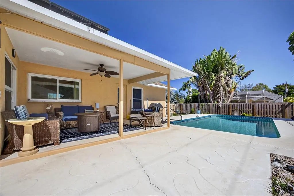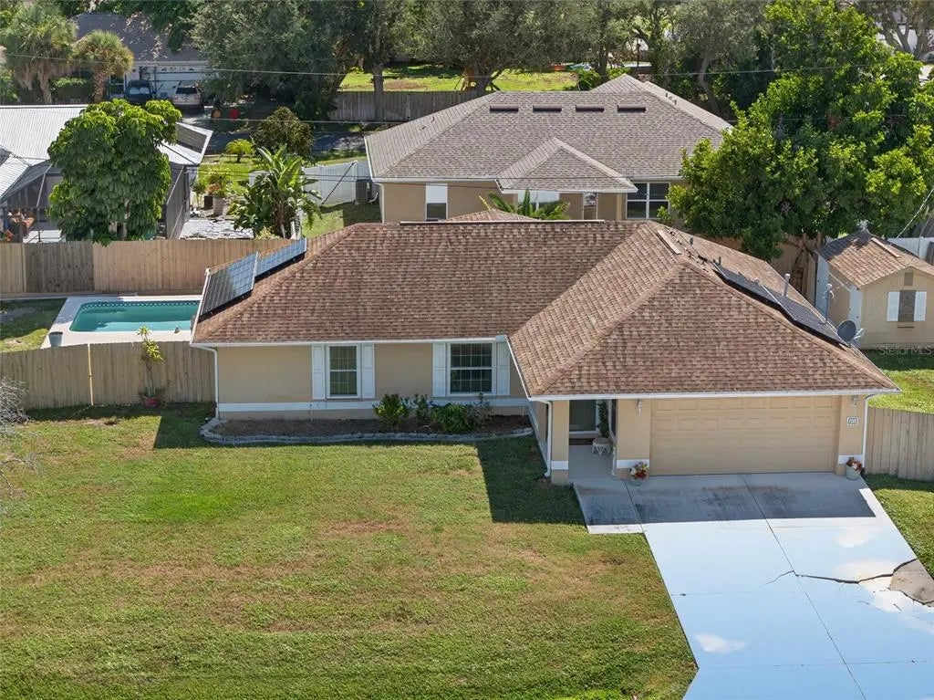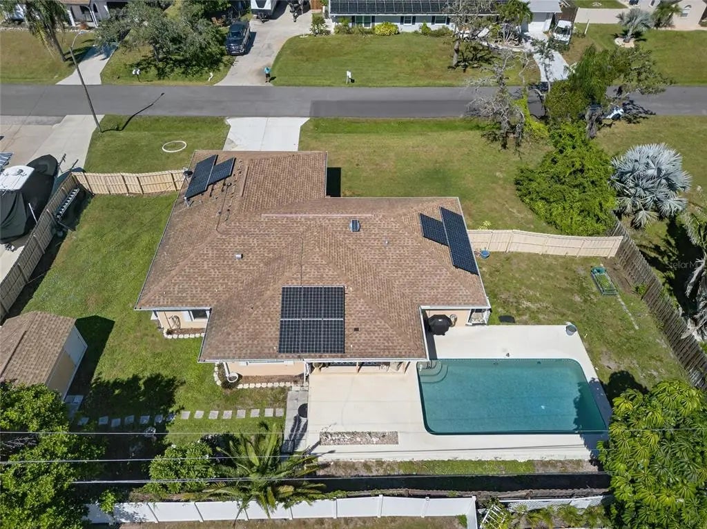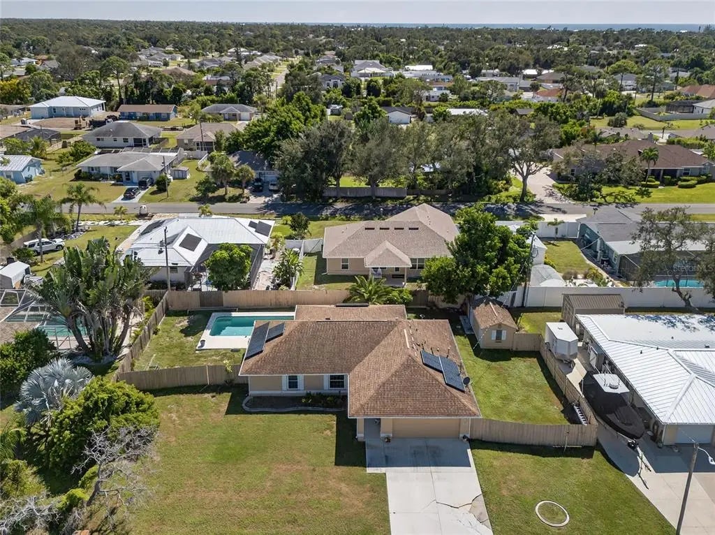 OVERSIZED LOT! 3 BEDROOM, 2 BATH, 2-CAR GARAGE POOL HOME CLOSE TO SOUTH VENICE BEACHES! 6.1 KW solar system is paid in full and provides energy efficiency and monthly savings. Step inside to an open floor plan featuring high ceilings, neutral décor, formal dining area, kitchen with plenty of cabinetry and counter space for cooking, stainless appliances including gas range, breakfast bar and casual dining area. Split floor plan provides privacy for guests offering primary bedroom with private bath plus two guest bedrooms, each with walk-in closet, and separate full bath with convenient pool access. Outdoor entertaining area features covered lanai and 14’x28' pool with southern exposure so guests from the north can enjoy an abundance of Florida sunshine overlooking fenced backyard with tons of room for furry friends to roam. Additional features and updates include hurricane impact windows, new well, new a/c in 2019, new gas hot water heater in 2023, water softener and 10’x18’ shed with electric. Located on quiet, pretty neighborhood street in the waterfront community of South Venice with quick access to the South Venice Civic Association where you can take scenic ferry rides to a private beach. Shamrock Park and Nature Center is close by with walking trails, playground, sports courts plus an environmental center all in waterfront habitat. Perfect location also close to fishing, boating, restaurants, shopping, schools, downtown Venice and all amenities! Don’t miss this opportunity to make this amazing property your new Florida retreat or permanent residence. Schedule your private showing today!
