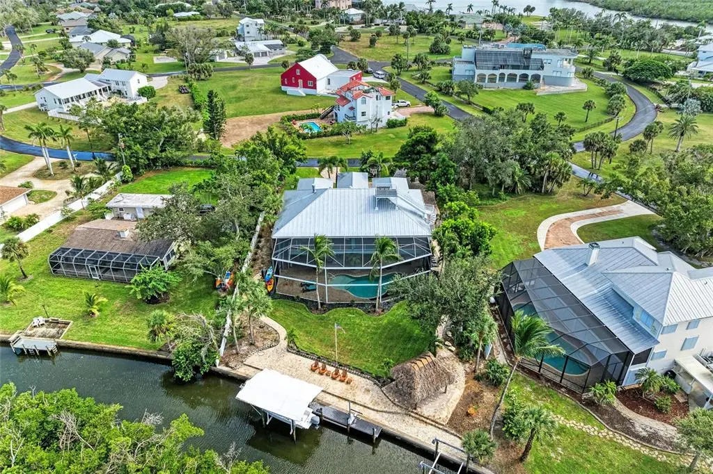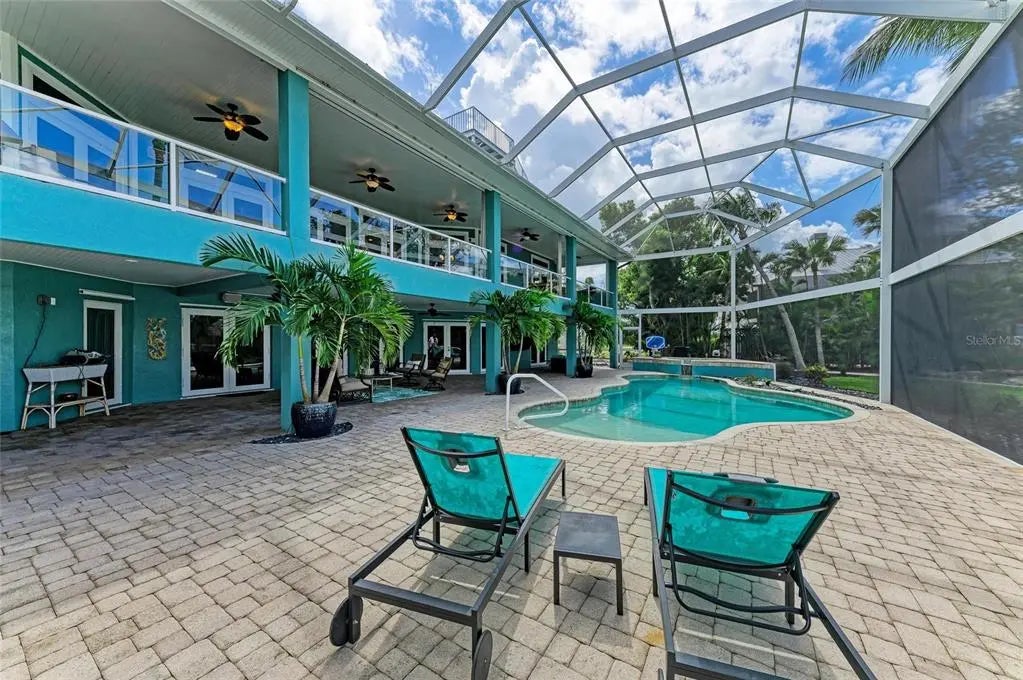 Paradise Found in Cape Haze! This majestic two-story luxury waterfront estate embodies the very best of Florida living, combining timeless design with exceptional upgrades and direct access to the Gulf of America. With 5 spacious bedrooms, 4 full bathrooms, a private elevator, and an expansive resort-style pool and spa, this home is as functional as it is breathtaking. From the moment you arrive, the curb appeal captivates with mature tropical landscaping with 3 wells on site, a circular drive, new pavers, and a welcoming entry. At the water’s edge, a brand-new tiki hut and lounge area create the perfect private retreat for sunset gatherings, overlooking the wide canal with a small island beyond the dock that provides privacy from houses across the canal. Step inside to soaring vaulted ceilings, French doors, and walls of glass that flood the home with natural light and frame panoramic water views. The main living level offers an open-concept design blending elegance with comfort: a great room with custom built-ins and fireplace, a gourmet kitchen with Cambria quartz counters, premium appliances including LG refrigerator and two-drawer dishwasher, upgraded cabinetry, and a glass-railed covered porch for year-round indoor/outdoor living. Off the porch is a spiral staircase to the Crow's Nest with 360 views of the nearby Intercoastal waterway, Gulf, and Boca Bridge. The primary suite is a sanctuary of luxury with balcony access, dual walk-in closets, and a spa-style bath featuring soaking tub, glass shower, and dual vanities. Also off the living room is a guest bedroom with built in murphy bed and en suite bathroom. Just past the kitchen, the 2nd guest bedroom with beautiful faux paint and extra space for relaxing is ideal and the 3rd guest bedroom has a built-in murphy bed and doubles as an office with access to the lanai. Also on this side of the home is the large laundry room and shared guest bathroom. The lower level expands the lifestyle with a 38’ x 27’ bonus room opening to the pool, a full bath, a large guest suite with den/walk-in closet, a 3-car garage, and dedicated workshop/storage areas—perfect for entertaining, hobbies, or multi-generational living. Recent upgrades ensure peace of mind and modern convenience: new pavers, new panoramic two-story pool cage, new Pentair pool heater/motor/controls, new AC, new water heater, new LG & GE appliances, new lawn and landscaping, plantation shutters, designer lighting, hurricane protection, generator connection, and more. Boaters will appreciate the deep-water canal with seawall, extended dock, two boat lifts, and a brand-new jet ski lift—all just 15 minutes to open Gulf waters via the Intracoastal. As part of Cape Haze Property Owner's Association, residents can opt-in to the optional HOA and enjoy deeded beach access to Don Pedro Island, and clubhouse access, offering a rare combination of Gulf-front beach lifestyle and deep-water boating from your backyard. Located minutes from world-class fishing, golf, fine dining, shopping, and set within golf cart-friendly streets, this home truly captures the essence of the Southwest Florida lifestyle. Luxury. Lifestyle. Location. This home has it all. Be sure to view the full virtual tour for every detail.
