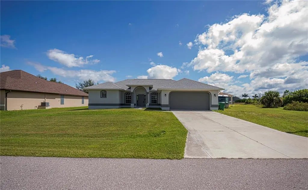 DOUBLE CORNER LOT estate! Here is your opportunity to experience extra privacy with this extra special 3/2/2 POOL Home in the charming waterfront community of South Gulf Cove.With eye catching curb appeal, enjoy the soaring entryway, rich columns, and complimentary accent bands, these added features are most inviting.This split floor plan offers custom stained mill-worked window and doorway casings, high ceilings, abundant natural light, all overlooking a spectacular HEATED SALTWATER POOL with modern automated features including a spa. Spacious living room has a built in entertainment center and tall vaulted ceiling, just perfect for all your socializing or winding down needs. This kitchen is chef worthy kitchen boasting granite countertops, wood cabinetry,stainless steel appliances, breakfast bar and separate dinette with exceptional wainscoting accents perfect for morning thru night to relax leisurely overlooking your backyard oasis. The master bedroom has a beautiful coffered ceiling, private patio/pool access, dual walk in closets and lovely en-suite bath featuring two sinks plus both a shower and large jacuzzi tub. Guests will enjoy two choice bedrooms with nice walk in closets, and breezy fans sharing a nicely appointed pool bath with the rest of the home. Inside laundry room is conveniently located by the 20x24 garage and kitchen with extra upper cabinetry, storage/utility closet/pantry plus has a utility sink. NEW 2023 ROOF, GUTTERS, NO-SEE-UM Pool screens, and freshly painted exterior add extra value and peace mind. SWIM YEAR ROUND, your Saltwater pool is also HEATED! Lounge leisurely on the pool sun ledge or relax in the jacuzzi and enjoy all the automated lighting features with so many options to dazzle whatever you or your guests desire. Imagine all the special times ahead to be made with friends and family within this idyllic retreat and the added fun features you can dream of in your expansive side and backyards.The second lot has already been cleared for your enjoyment and ready for all your personal ideas. South Gulf Cove is a premier deed restricted community featuring a voluntary HOA with remarkably low annual dues of only $120.As an HOA member, you'll enjoy access to the air-conditioned clubhouse, complimentary Wi-Fi, ping pong, darts, cornhole, horseshoes, tiki huts, and discounted clubhouse reservations. Several community parks are nearby, offering walking paths, boat launch, fishing docks, picnic shelters, BBQ grills, and playgrounds.SGC is only minutes away from WORLD CLASS FISHING, GOLF COURSES, shopping, dining, SW FL beaches in Boca Grande and Manasota Key plus access to over 55 miles of SGC waterways leading to Charlotte Harbor, Myakka River & the Gulf.Here is the Florida lifestyle you've dreamed of...make it a reality & schedule your showing TODAY!