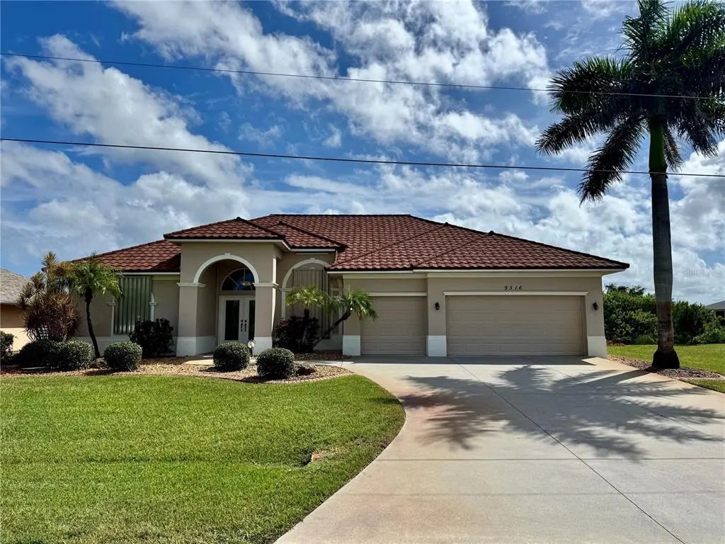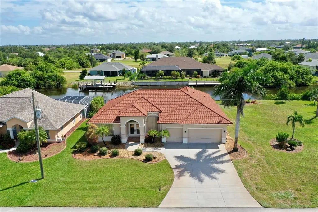 Welcome to this stunning 3-bedroom, 2-bathroom, 2,401 sqft pool & waterfront home, located on a boat-access, saltwater canal in the desirable South Gulf Cove community. This residence offers the perfect combination of comfort, elegance, and Florida lifestyle — with direct canal access leading out to the Myakka River, Charlotte Harbor, and Gulf of Mexico. (.23 acre or 10,000 sqft lot is available for sale separately at 9524 Miami Cir, directly next to this home, allowing for extra space and privacy if desired) Step inside and be greeted by vaulted ceilings and a bright, open, living and dining area. The sliding doors allow for beautiful views of the pool, patio, and canal, creating a seamless indoor–outdoor living experience. The spacious kitchen is fully equipped with all necessary appliances and beautiful granite countertops, making it perfect for both everyday living and entertaining. The master suite is located on the left wing of the home, featuring dual walk-in closets, a luxurious en-suite bathroom with a beautiful soaking tub, shower, private commode, and direct views of the pool and patio. On the opposite side, two comfortable guest bedrooms share a well-appointed bathroom, providing privacy for visitors. Enjoy year-round relaxation in the heated pool, and a beautiful view of the Canal from the dock in your back yard! Take advantage of the 3-car garage, offering plenty of room for vehicles, storage, or a workshop. Residents of South Gulf Cove enjoy public utilites (water and sewer), a community recreation center, parks, and a boat ramp. The property also has a well for irrigation. South Gulf Cove is conveniently located near Boca Grande, Englewood Beach, and Manasota Key, offering easy access to some of Florida’s most beautiful beaches along with shopping, dining, schools, and several different golf courses all within a short drive! Charlotte Sports Park, home to the Tampa Bay Rays spring training, is also only a 15-minutes drive away! Don't miss the opportunity to schedule a showing today!