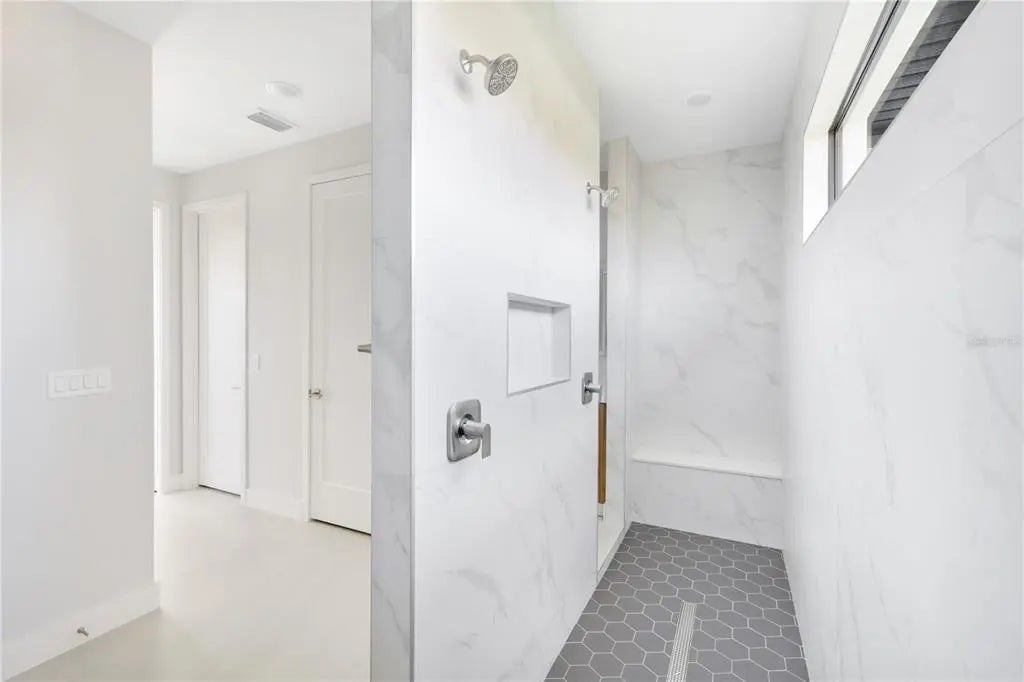 - Exterior FeaturesLighting, Outdoor Shower, Sliding Doors