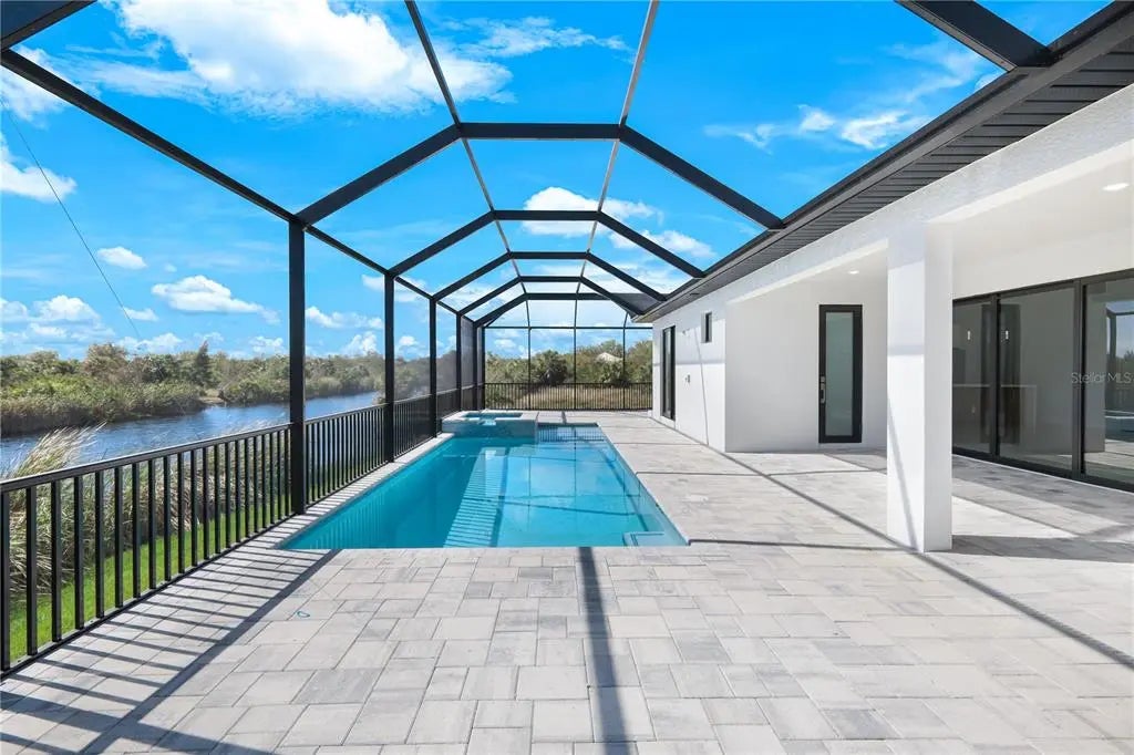 HUGE PRICE IMPROVEMENT***MOTIVATED SELLER***BRING ALL OFFERS***MUST SELL***MOVE IN READY*** This BRAND-NEW, CUSTOM-BUILT HOME radiates QUALITY CRAFTSMANSHIP and MODERN ELEGANCE from the moment you arrive. The PAVER DRIVEWAY, GRAND ENTRANCE, and FLOOR-TO-CEILING WINDOWS WITH SLATTED WOOD ACCENTS immediately set the tone for the stunning design found throughout. Perfectly situated on a SALTWATER CANAL WITH DIRECT GULF ACCESS in the highly desirable boating community of South Gulf Cove, this 3-BEDROOM + OFFICE, 3-BATHROOM, RESIDENCE — featuring TWO MASTER SUITES — offers REFINED LUXURY and THOUGHTFUL FUNCTIONALITY at every turn. Step inside to discover SOARING VOLUME CEILINGS, 8-FOOT DOORS, and DESIGNER 24” x 48” porcelain tile flooring throughout. The SPACIOUS LIVING ROOM showcases a dramatic TRAY CEILING WITH RECESSED LIGHTING and a THREE-PANEL SLIDING GLASS DOOR that opens to the COVERED LANAI, creating a bright and seamless indoor-outdoor living experience. The primary suite is a private retreat, featuring lanai access, a Tray ceiling, TWO walk-in closets, and a SPA-INSPIRED BATHROOM with DUAL VANITIES, QUARTZ COUNTERTOPS, and a TILED SHOWER WITH DUAL SHOWERHEADS. The JUNIOR PRIMARY SUITE (perfect for guests or in-laws) includes its own ENSUITE BATH, a LARGE WALK-IN CLOSET, and PRIVATE POOL DECK ACCESS, offering comfort and independence for your visitors. At the heart of the home, the CHEF-INSPIRED KITCHEN dazzles with HIGH-END STAINLESS STEEL APPLIANCES, TILE BACKSPLASH, WALK-IN PANTRY, and a WATERFALL-EDGE QUARTZ ISLAND accented by elegant PENDANT LIGHTING and SLATTED WOOD DETAILING. Sleek BLACK HARDWARE adds a modern finishing touch. Enjoy YEAR-ROUND PEACE OF MIND with HURRICANE-IMPACT WINDOWS AND SLIDING GLASS DOORS throughout. The outdoor living area is equally impressive, featuring a spacious covered lanai, SUMMER KITCHEN hookups, OUTDOOR SHOWER, and a POOL AND SPA with a SUNDECK perfect for lounging, splashing, or cooling off with your furry friends. The 60' wide, WRAP-AROUND PAVER POOL DECK and HEAVY-DUTY UPGRADED CAGE (6” FRAMING) complete this exceptional OUTDOOR OASIS. Each of the three bedrooms offers DIRECT POOL ACCESS, making this home ideal for both ENTERTAINING and RELAXED FLORIDA LIVING. The OVERSIZED 3-CAR GARAGE (32’ x 20’, 720 SQ. FT.) includes HURRICANE-RATED DOORS and houses the HVAC handler and water heater. Located just minutes from GOLF COURSES, BEACHES, MARINAS, WORLD-CLASS FISHING, and ENDLESS WATER ADVENTURES, this 1,851 SQ. FT. (UNDER AIR) home feels even larger thanks to its OPEN DESIGN AND SOARING CEILINGS. Bring your BOATS, RVs, AND TRAILERS — the South Gulf Cove Community offers TWO BOAT RAMPS, FIVE PARKS, and is GOLF CART-FRIENDLY, making it the ultimate destination for OUTDOOR LIVING AND COASTAL ADVENTURE. This remarkable property truly has it all — LUXURY, COMFORT, AND PEACE OF MIND — all at an incredible value. Don’t miss your opportunity to call this South Gulf Cove GEM your new HOME IN PARADISE. call today to schedule your private tour!