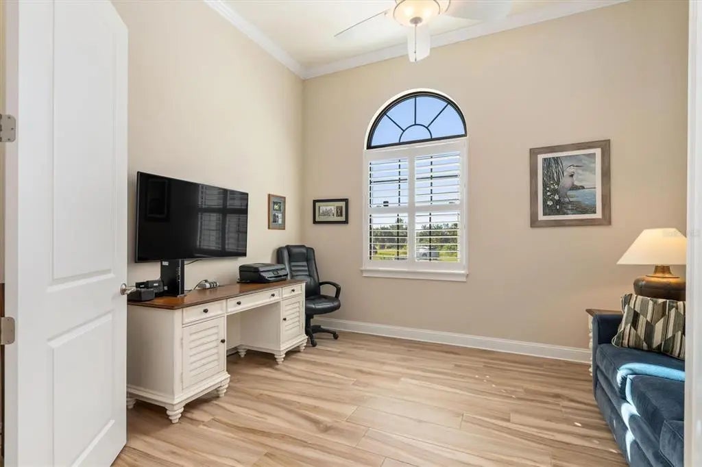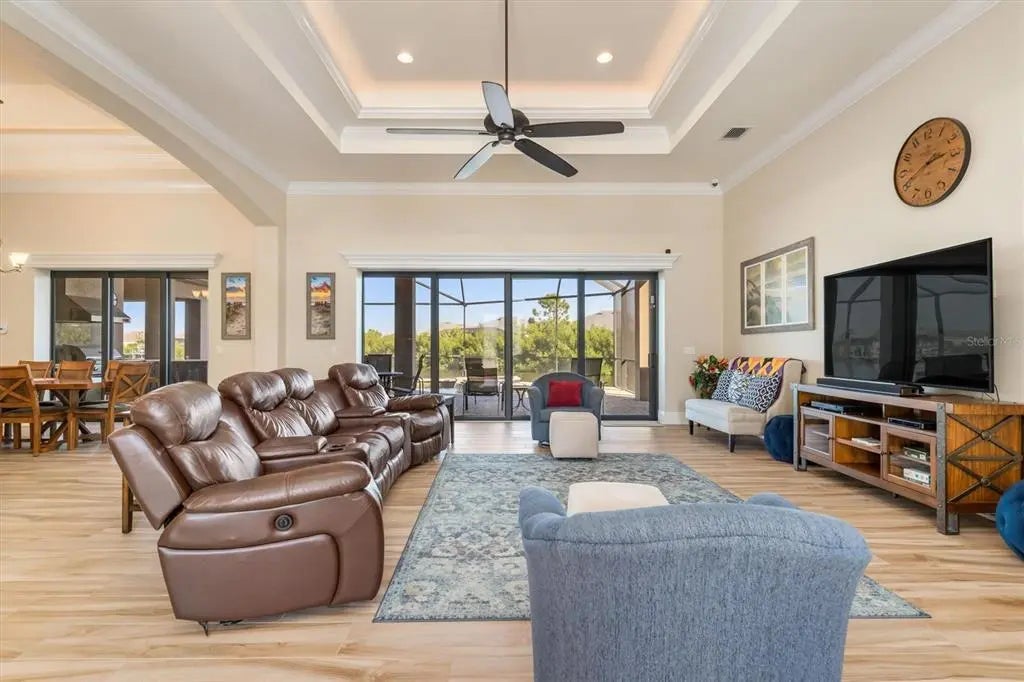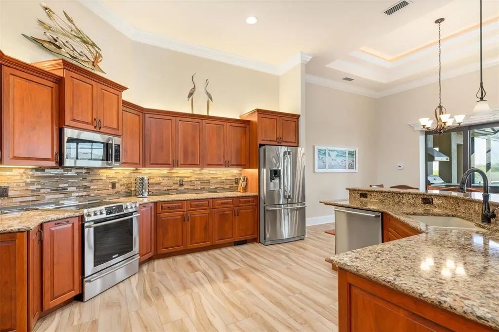 - Interior FeaturesBuilt-in Features, Ceiling Fan(s), Crown Molding, Eating Space In Kitchen, High Ceilings, Living Room/Dining Room Combo, Open Floorplan, Solid Surface Counters, Split Bedroom, Stone Counters, Thermostat, Tray Ceiling(s), Walk-In Closet(s), Window Treatments