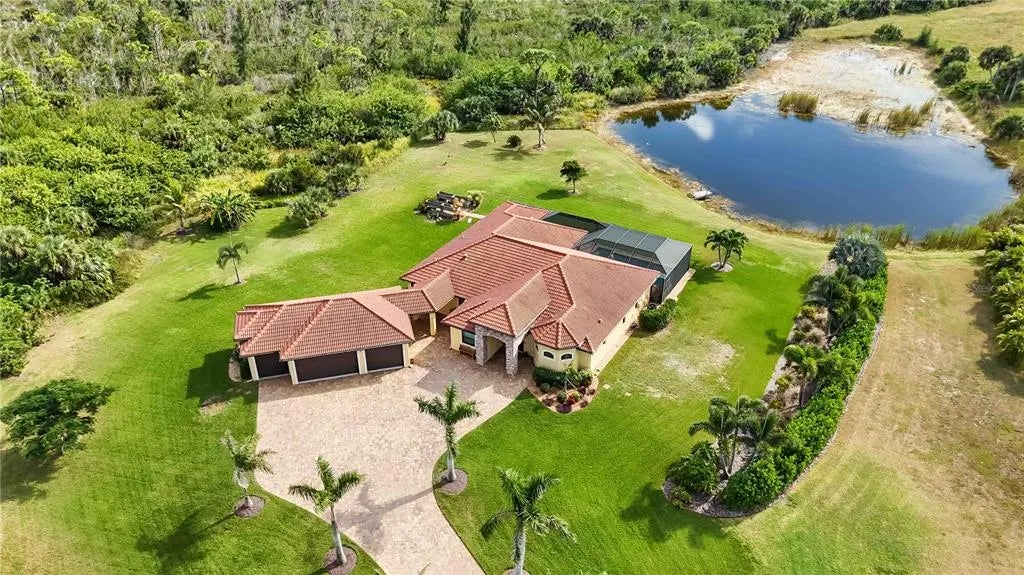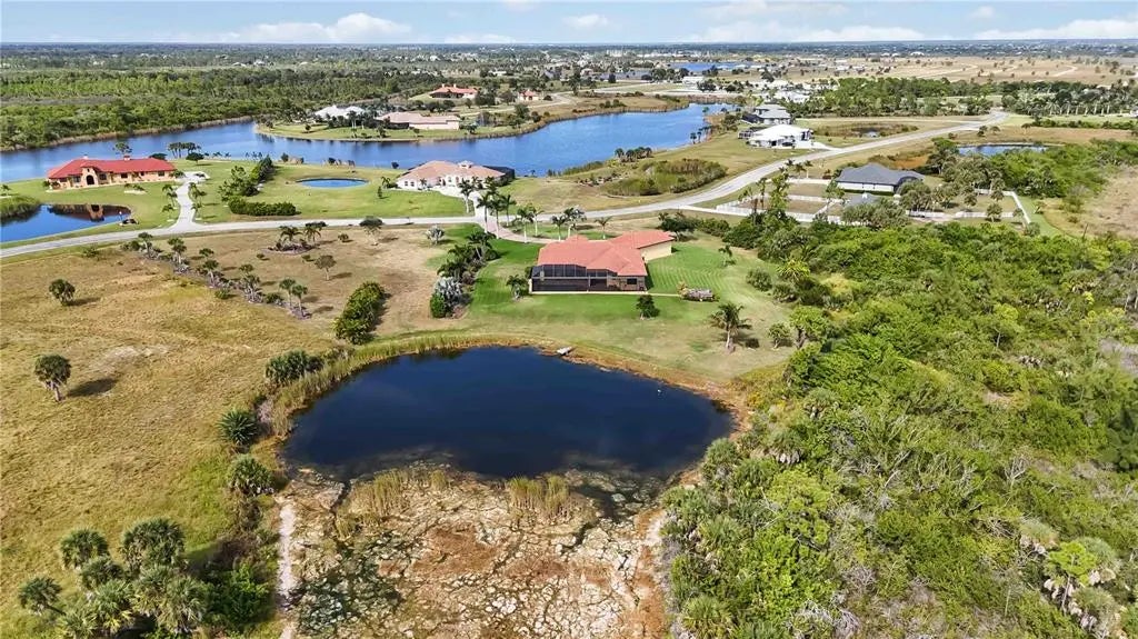 One or more photo(s) has been virtually staged. Discover a one-of-a-kind opportunity in the exclusive equestrian community of Gasparilla Preserve! Set on over 5 acres of private, pond-front land, this Mediterranean-inspired ranch blends luxury, space, and nature just minutes from Boca Grande’s sugar-sand beaches, Coral Creek Airport, and top-tier golfing at Coral Creek Club. Built in 2019 with solid CBS construction and hurricane-rated Energy Star windows, this 3-bedroom + office + bonus room estate is storm-ready and built to impress. Inside, an open-concept design highlights a gourmet kitchen with rich wood cabinetry, stone counters, stainless appliances, a walk-in pantry, and an oversized island perfect for entertaining. The kitchen flows seamlessly into a spacious great room with soaring ceilings and pocket sliding doors that open wide to the resort-style lanai. The primary suite is a dream with double walk-in closets, a spa-worthy bathroom featuring a freestanding soaking tub, dual vanities, and a natural stone walk-through rain shower. Guests enjoy two generous bedrooms with a shared bath, while the separate office and billiard room add flexible living options. Outside, unwind in the screened saltwater pool and spa with panoramic views of your own pond and the peaceful preserve beyond. Entertain year-round with an outdoor kitchen, covered patio, and multiple seating areas. The 4-car garage with additional workshop space is ideal for equestrian gear, tools, or toys. Gasparilla Preserve is a gated, HOA-protected enclave designed for those who value privacy, architectural integrity, and connection to the outdoors. With non-motorized boating, fishing, and horse-friendly zoning, every detail invites you to live fully and freely. Don’t miss your chance to own this rare slice of Florida paradise—book your private showing today!