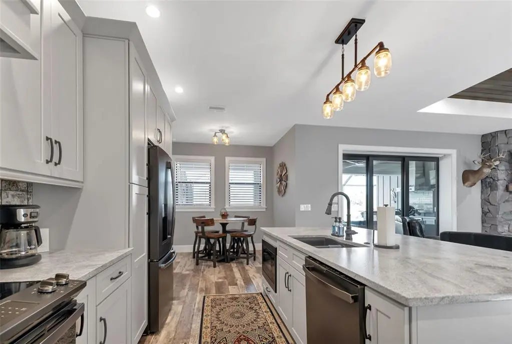 - Interior FeaturesCrown Molding, Eating Space In Kitchen, Open Floorplan, Split Bedroom, Stone Counters