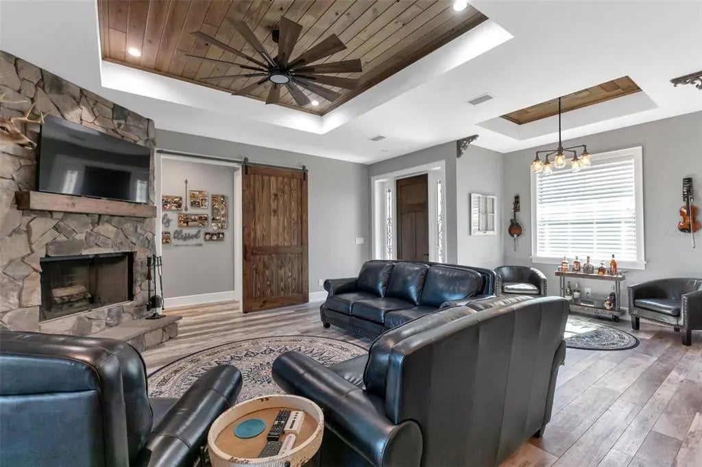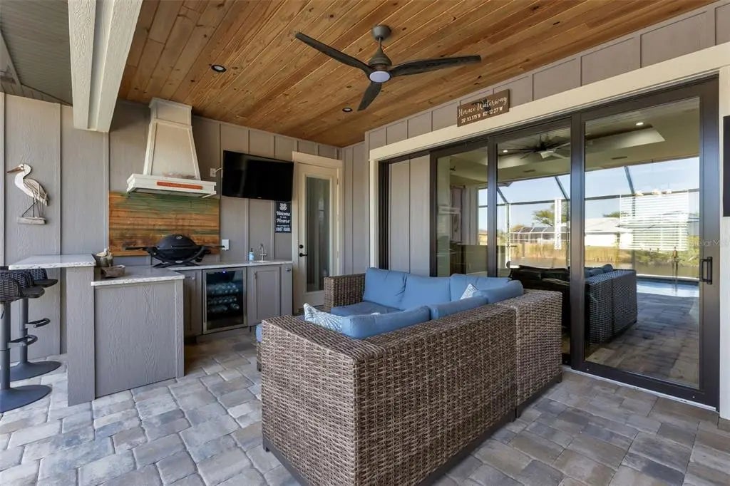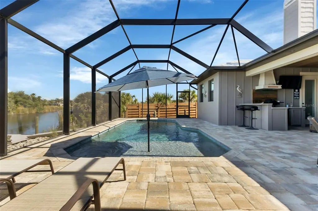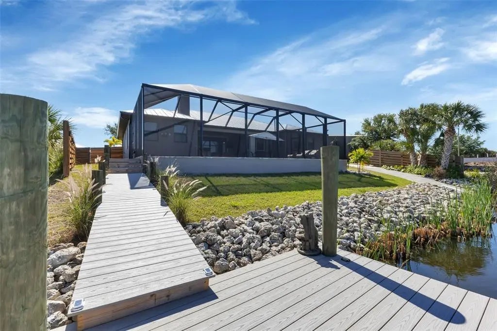 Discover the perfect blend of luxury, craftsmanship, and functionality in this exceptional waterfront custom-built 3-bedroom, 2-bath pool home. Set on two spacious lots along a peaceful saltwater canal, this property offers rare privacy, scenic views, and direct waterfront access. Inside, the home showcases modern open-concept living, seamlessly connecting the living, dining, and kitchen areas—perfect for entertaining or relaxed family gatherings. The chef’s kitchen impresses with granite countertops, stainless steel appliances, and ample cabinetry, while a charming farm sink in the laundry room adds both style and practicality. The highlight of the estate is the massive 35' x 25' detached metal garage, fully air-conditioned and featuring a 10-foot overhang—ideal for RV storage, a large workshop, or hobby space. Whether you’re a craftsman, car enthusiast, or adventurer, this versatile structure provides the flexibility and room you need. Each bedroom is thoughtfully designed for comfort, with the primary suite offering elegant tray ceilings accented by tongue-and-groove wood for a warm, inviting touch. The bathrooms feature custom shiplap siding, blending coastal character with refined design. Step outside to your own private oasis: a 40' x 19' enclosed pool area surrounded by brick pavers and a sundeck, perfect for lounging or entertaining. The outdoor sink and wine cooler make hosting gatherings effortless, allowing you to enjoy the best of Florida’s indoor-outdoor lifestyle. Additional features include interior barn doors that add a modern rustic touch, a 12' x 12' dock on the saltwater canal with a private concrete boat ramp—ideal for boating, kayaking, or simply relaxing by the water—and expansive grounds that provide plenty of space and privacy. Furnishings are optional! This property truly embodies luxury, functionality, and coastal charm—a rare opportunity for those seeking a refined yet relaxed lifestyle. Whether as a family home or a stunning retreat, this residence delivers it all.