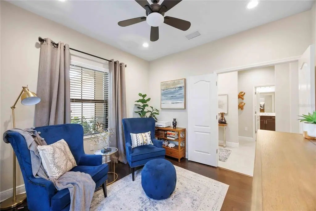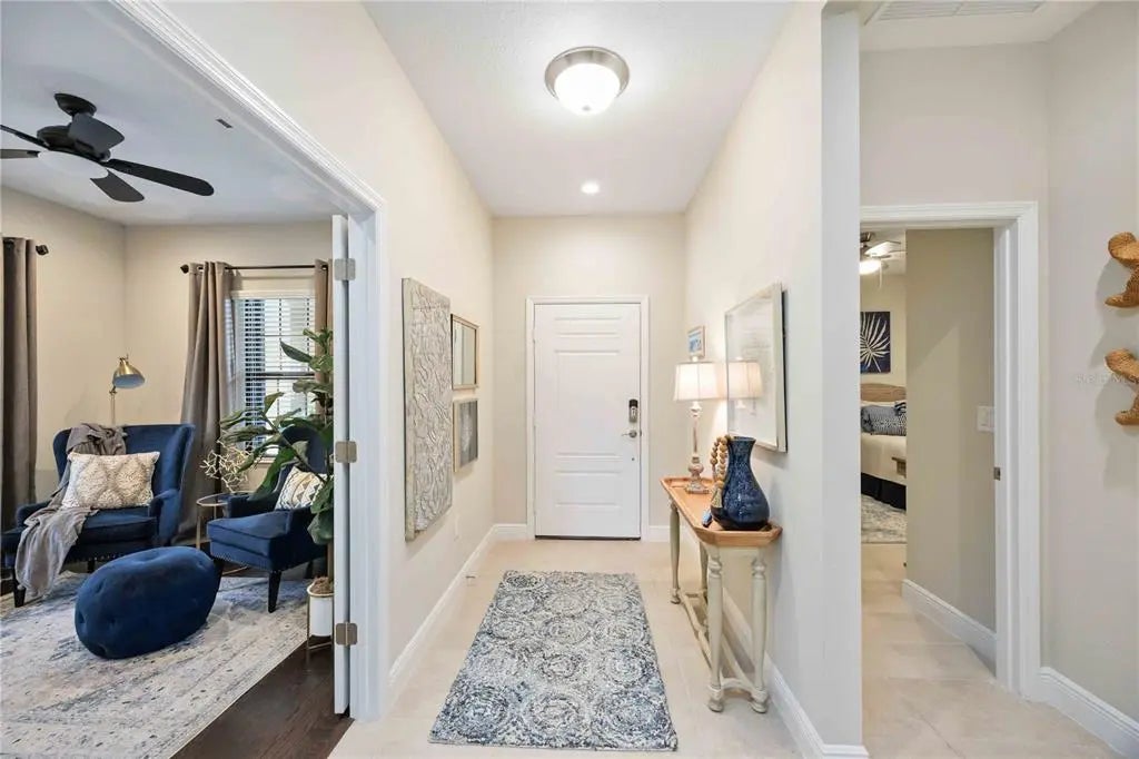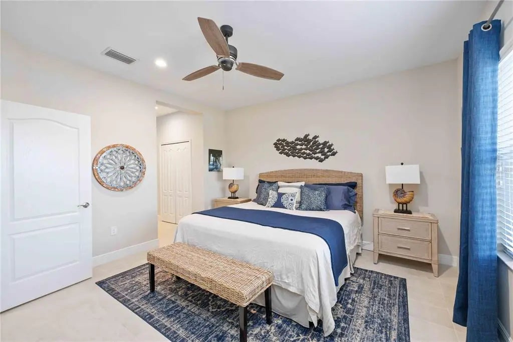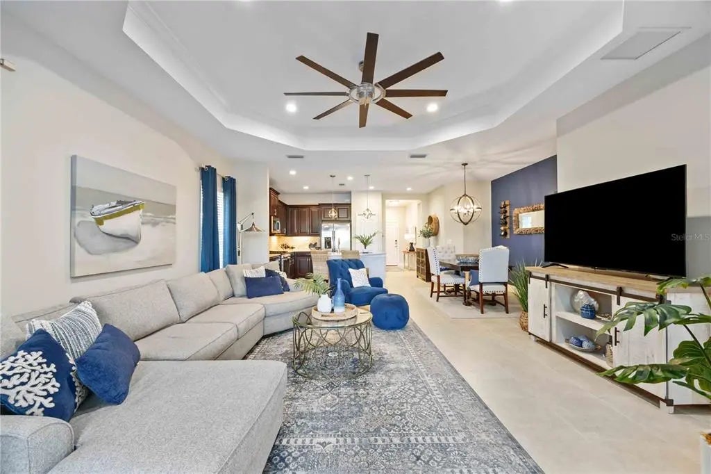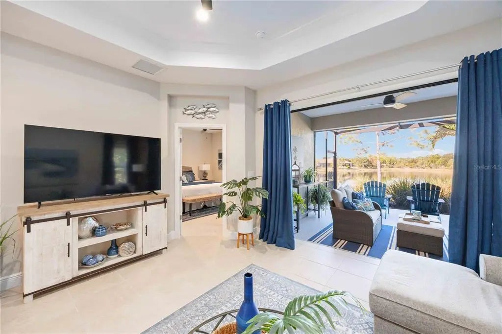Under contract-accepting backup offers. Welcome home to this beautifully maintained Tidewater Villa featuring 2 bedrooms, 2 baths, and a spacious den/office that can easily function as a third bedroom, located in the highly sought-after community of Grand Palm in Venice. Set on a serene waterfront lot, this residence offers west-facing sunset views from the extended screened lanai, complete with an epoxy-finished floor, picture-window screen cage for unobstructed lake vistas, lush tropical landscaping, and an SPF electric sunshade for added comfort and privacy. A retractable front door screen adds extra convenience and airflow. Inside, you'll appreciate the thoughtful upgrades throughout, including tile flooring in both bedrooms, luxury vinyl plank flooring in the den, coffered ceilings and crown molding in the living room, and custom lighting and fans. The kitchen boasts 42” cabinetry, a country-style sink, natural gas stove, tile backsplash, under-cabinet lighting, and a new garbage disposal. Smart-home features include a smart thermostat and Ring doorbell for added efficiency and security. The primary suite includes dual sinks and a walk-in shower, while the laundry room offers upper cabinets and shelving—and the washer and dryer are included in the sale. Additional conveniences include included window treatments, accordion hurricane shutters, whole-home surge protection, and a garage with elevated storage shelving. Best of all, this property is not in a flood zone, providing peace of mind. Residents of this Tidewater Villa neighborhood enjoy their own private pool and spa just steps away, in addition to the three other community pools in Grand Palm. HOA fees include lawn and landscape care, extensive recreational amenities, and a full calendar of social events. Grand Palm is renowned for its active lifestyle and natural beauty, offering a full-time activities director, state-of-the-art fitness center, pickleball, tennis, bocce, basketball, volleyball, dog parks, fishing piers, and miles of walking and biking trails, plus The Social Club and Exploration Park—all accessible by golf cart. Conveniently located near Downtown Wellen Park and the Atlanta Braves Spring Training facility, you’ll enjoy easy access to dining, shopping, entertainment, festivals, and community events. This Tidewater Villa combines comfort, convenience, and resort-style living in one of Venice’s most desirable neighborhoods.