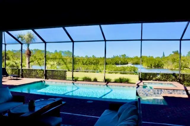 Discover waterfront luxury living within an exclusive private gated community. This stunning 4 bedroom 2.5 bath home sits proudly on a magnificent tip lot that offers breathtaking panoramic water views. An impressive 165 feet of water frontage wraps around the property. The home is located on an oversized estate lot that measures over 19,000 square feet. This expansive lot offers unparalleled space and privacy rarely found in this desirable neighborhood. Boating enthusiasts will absolutely adore this specific location because it is unique. It is the closest lot to the South Gulf Cove Lock. You gain quick access to open water for all your boating adventures. You can also enjoy fishing and crabbing from your property. The residence spans over 2,300 square feet of air-conditioned living space. It features a spacious three-car garage with a durable epoxy coated floor. Enter the residence through a welcoming front screened porch. Step inside the foyer and prepare to be amazed by the sight. The 12 foot glass sliders frame the sparkling heated pool with its bubbling spa and the magnificent water views perfectly. The home is tiled elegantly throughout for easy maintenance. The crown moulding and tray ceilings are a nice luxury touch. The gourmet kitchen is a chef's dream that features high-end appliances and granite countertops. The large granite island can comfortably seat 8 and become the hub for family meals and gatherings. The home is equipped with modern solar panels to minimize energy costs. Water quality is taken very seriously with a whole house water softener, a UV sanitizer and a reverse osmosis system in the kitchen. The split floor plan ensures maximum privacy for all residents and guests. Two guest bedrooms are situated on one side of the home. One of them connects to the lanai and pool through the convenient powder room. The fourth bedroom is located at the front of the home. This room is incredibly flexible and can serve as a bedroom, study or music room. The primary bedroom is a true sanctuary that can be closed off from the rest of the home. This design ensures peace and quiet from the living areas. From the primary bedroom you can access directly to the pool for a refreshing morning or evening swim. A large walk-in closet awaits you with plenty of storage space. The adjoining primary bathroom is spacious and features a luxurious soaking tub. There is also a separate walk-in shower for your daily routine. The outdoor living space is truly expansive and perfect for entertaining. Enjoy the Florida sun by the pool, watch boats pass by and abundant wildlife. This is a rare real estate opportunity that combines luxury with functionality. The estate lot size is a luxury you will always appreciate. Make this waterfront dream home yours today and start living the lifestyle. Please call for a private viewing.