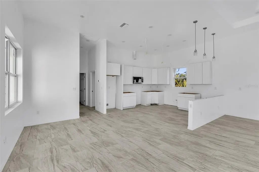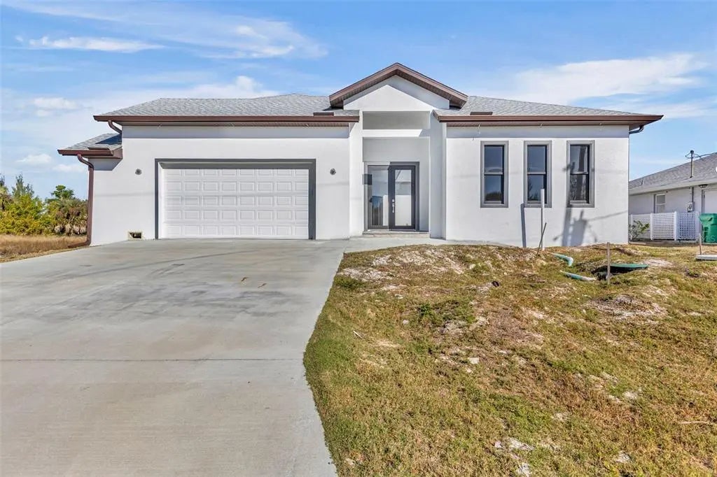 PRICE ADJUSTMENT! Opportunity awaits with this new, unfinished construction built in 2024 and ideally located in Port Charlotte, FL. This property offers a flexible 3-bedroom layout, including a private in-law suite with a full bathroom—perfect for multi-generational living or guest accommodations. The open floor plan is ready for your finishing touches, allowing you to design the interior to your personal taste. Kitchen cabinets are already in place, giving you the freedom to complete the kitchen exactly how you envision. A unique center courtyard enhances the home’s design and features the beginnings of an in-ground pool, creating the potential for a stunning private oasis. Situated on a canal with access to the river and the Gulf, this property combines customization potential with a desirable waterfront lifestyle. A rare chance to finish a nearly new home to your specifications in a prime Florida location. Property is being sold AS-IS. Construction is unfinished and will require completion; buyer to verify condition, permits, zoning, utilities, and suitability for intended use. No warranties or representations are made regarding the completion, condition, or code compliance of the structure.