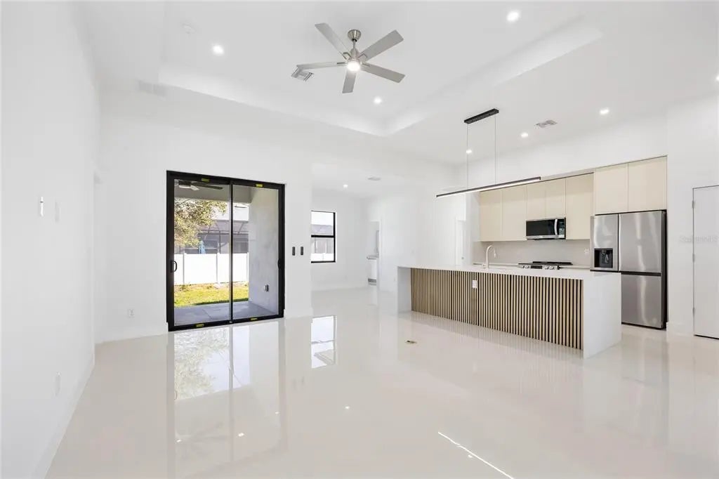 - Interior FeaturesCeiling Fan(s), Eating Space In Kitchen, High Ceilings, Kitchen/Family Room Combo, Open Floorplan, Solid Surface Counters, Walk-In Closet(s)