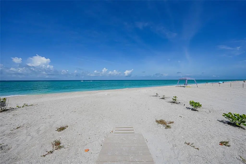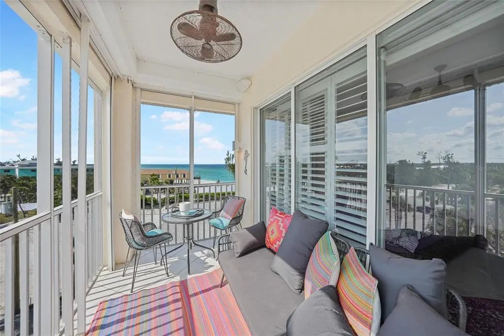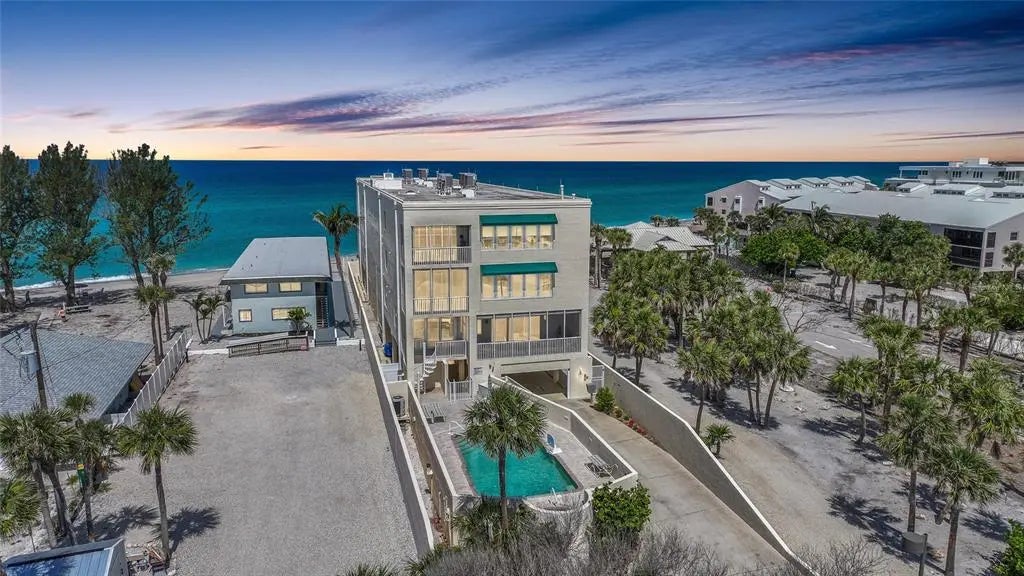 Welcome to Krystal Key Condominiums, an exclusive, gated enclave on the pristine shores of Manasota Key where luxury, privacy, and laid-back elegance converge. This exquisite 2-bedroom, 2.5-bath residence is a rare gem—offering all the sophistication of high-end coastal living while embracing the serenity of the Gulf Coast. This building made it through all storms practically un-scathed, like a local Fort Knox. Enter through your privately gated drive and enjoy the convenience of two assigned covered parking spaces tucked beneath the building—shielded from the elements and secured for peace of mind. A private elevator delivers you directly to a semi-private grand foyer, which can be key-locked for enhanced security and exclusivity. Step through double entry doors into a space designed to impress. The open-concept layout is enhanced by PGT impact-rated tilt-and-turn windows and sliders that bathe the home in natural light while offering effortless views of both the Gulf of America and Lemon Bay. Relax in the inviting living area anchored by a modern glass crystal fireplace—a shimmering statement of both warmth and sophistication. The chef-inspired kitchen is a culinary dream: featuring a massive quartzite island, Bosch stainless steel appliances (including induction range, warming drawer, and refrigerator), a Houzz apron-front sink, extensive cabinetry, and a custom-built pantry with pull-out drawers. Adjacent, a charming media/family room with built-in shelving provides the perfect space to unwind or entertain. Both bedroom suites are luxuriously appointed with walk-in closets and private baths. The primary suite boasts a spa-like experience, featuring dual vanities, a steam shower, and a deep soaking tub. Step onto either of the two expansive private balconies to enjoy partial Gulf views and the soothing sounds of the surf. The primary balcony also includes hurricane roll-down shutters for added protection and convenience. Additional features include: • Impact glass throughout • Custom chef’s desk with quartzite surface • Elegant finishes and designer touches in every room • Access to a saltwater community pool, heated spa, and outdoor grilling area • Keypad entry, security cameras, and guest parking • Just a short stroll to Stump Pass State Park, restaurants, and charming island boutiques Whether you're seeking a full-time residence or a seasonal escape, this home offers unmatched comfort, security, and coastal beauty. Live where others vacation. Showings by private appointment only. **PLEASE ENJOY THE 3D INTERACTIVE VIRTUAL TOUR ASSOCIATED WITH THIS LISTING**