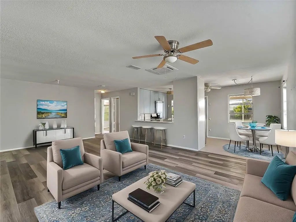 - Interior FeaturesCeiling Fan(s), Eating Space In Kitchen, Living Room/Dining Room Combo, Open Floorplan, Window Treatments