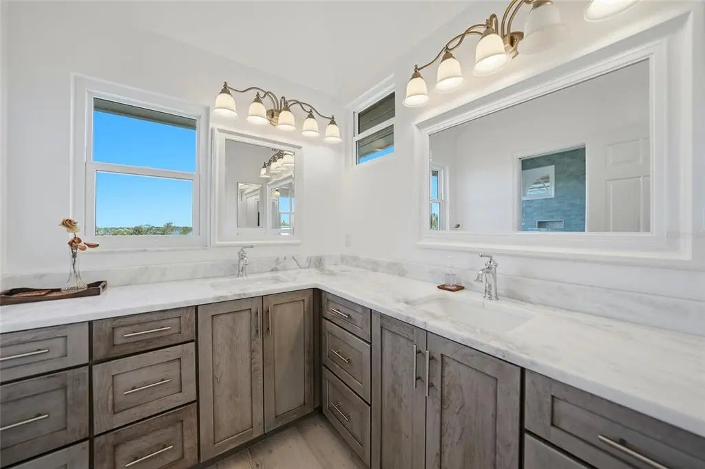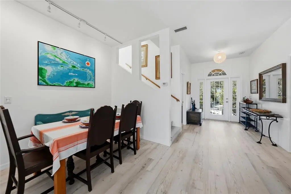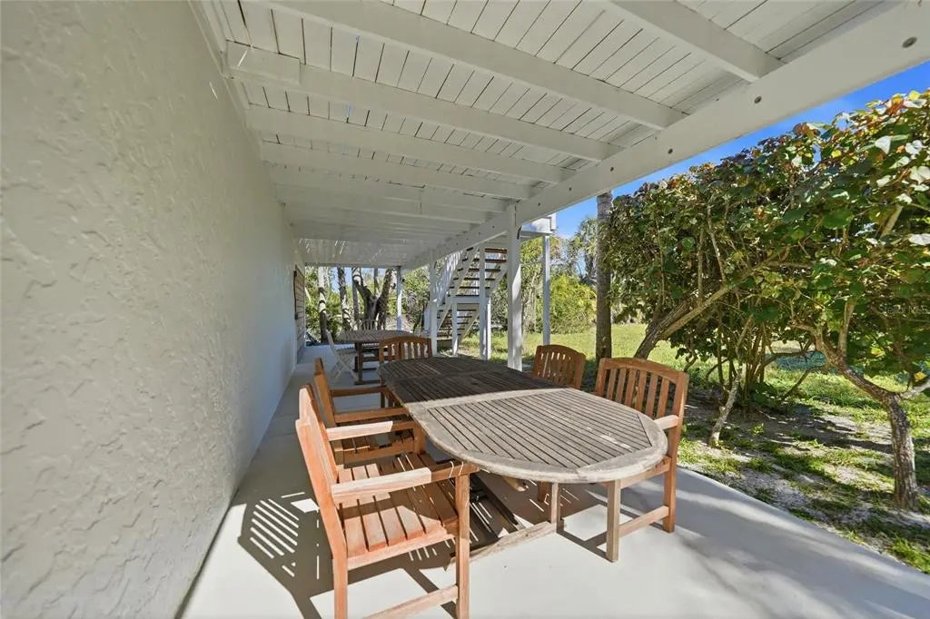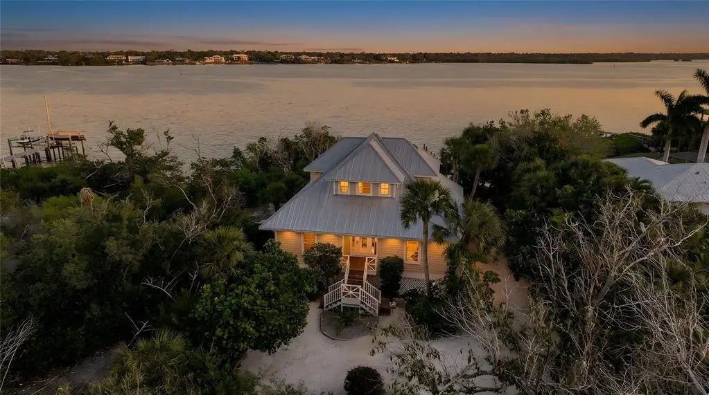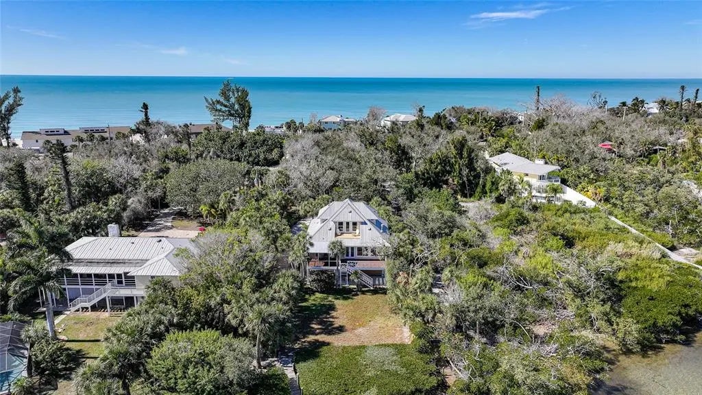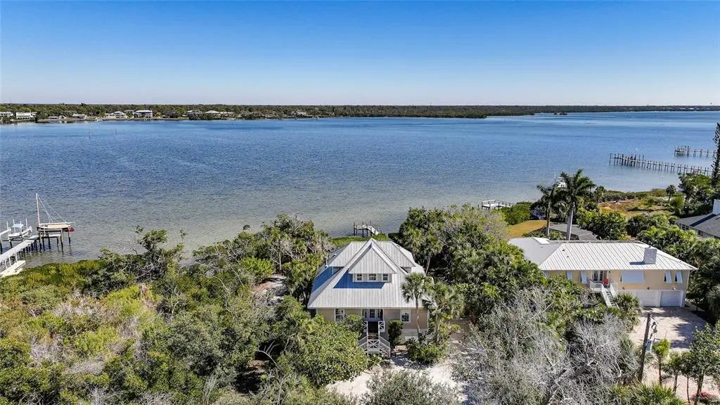 An exceptional offering on Manasota Key, this refined waterfront residence delivers a lifestyle defined by privacy, elegance and a setting that is “one with nature”. Arriving via a 400 ft winding driveway through century oaks and countless palm trees on Manasota Key is a private waterfront sanctuary. The property captures the nature, beauty and serenity of old world Florida. The home is set on nearly one acre and bordered by an unbuildable neighboring parcel. Situated on one of the widest points of Lemon Bay, the home enjoys riparian rights extending over 1,200 feet into the bay that forever protects your water view. There is a private L-shaped boat dock - ideal for boating enthusiasts seeking bay and gulf access with no fixed bridges. Directly across the street is a 6ft deeded beach access easement. The home is far from public access in both directions so your beach is about as private as they come. The residence was renovated top to bottom in 2023-2024 and designed with both elegance and high quality finishes in mind. The first living level sits at 13.4 feet, with Miami-Dade IMPACT-rated low-E, argon filled windows certified to 200+ mph and an all hip metal roof, providing confidence, serenity and style. Inside, soaring ceilings and abundant natural light create an immediate sense of openness and sophistication. Coastal finishes, luxury vinyl flooring, and a wood-burning fireplace lend warmth and character, while the layout flows seamlessly for both relaxed living and elevated entertaining. The owner’s suite occupies all of the top floor and is a private retreat unto itself, featuring dedicated office space, generous closets and a private balcony that captures breathtaking views across Lemon Bay—perfect for sunrise reflections, daytime sun bathing and evening star gazing. Additional amenities include: • Covered parking for 4 cars • Generous under-home storage and workshop • Central vacuum system • Alarm and exterior video security system. This is a home that offers not just beauty, but balance—where quiet mornings on the bay, afternoons on a private beach and evenings beneath expansive skies become part of everyday life. Located close to Manasota Key’s celebrated dining, boating, and natural beauty, yet worlds away from the ordinary. A rare coastal sanctuary, this property combines architectural presence and serene beach living—an opportunity that stands apart on Manasota Key.