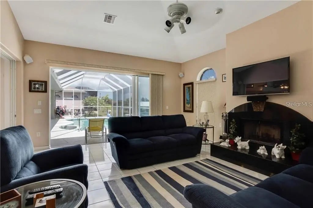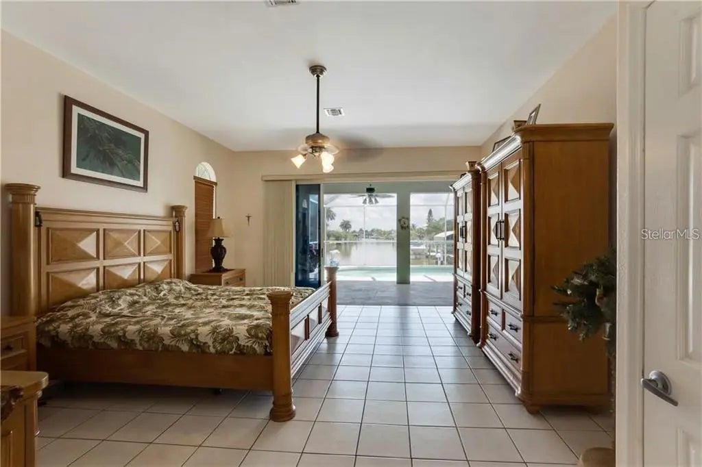 SALTWATER CANAL HOME WITH OVER 3,000 sq. ft. of living space on a double lot .Partially furnished. This custom built 4 bedroom, 2 1/2 bath home is located in South Gulf Cove. The fabulous kitchen has a tremendous amount of granite counter space. In addition to an island with a separate sink for prep work. More cabinets than you could ever fill. Eat in area adjacent to a large breakfast bar. Separate Living Room and Family room with cathedral ceilings also high ceilings throughout the rest of the house. Family room has decorative fireplace (not wood burning) for your enjoyment. Master bedroom overlooks the pool area and beautiful long view down the canal. Enjoy the large Master Bathroom with whirlpool tub and 6 x 9 marble shower. Walk in closet and a separate bonus room with sink and drain in the floor to accommodate bathing your pet (great bonus for the pet lovers.) Second bathroom has tub/shower combo in addition to two marble sinks. Inside laundry is large and lots of cabinet space. Great addition is the central vac with 4 hookups. Pool has Mansard cage and covered area that is full width of lanai with storage and pool bath. Double jet ski dock. Roof was replaced 2024, The adjoining lot has single garage door shed with RV Plug. OWNER IS MOTIVATED as reflecting in the price.