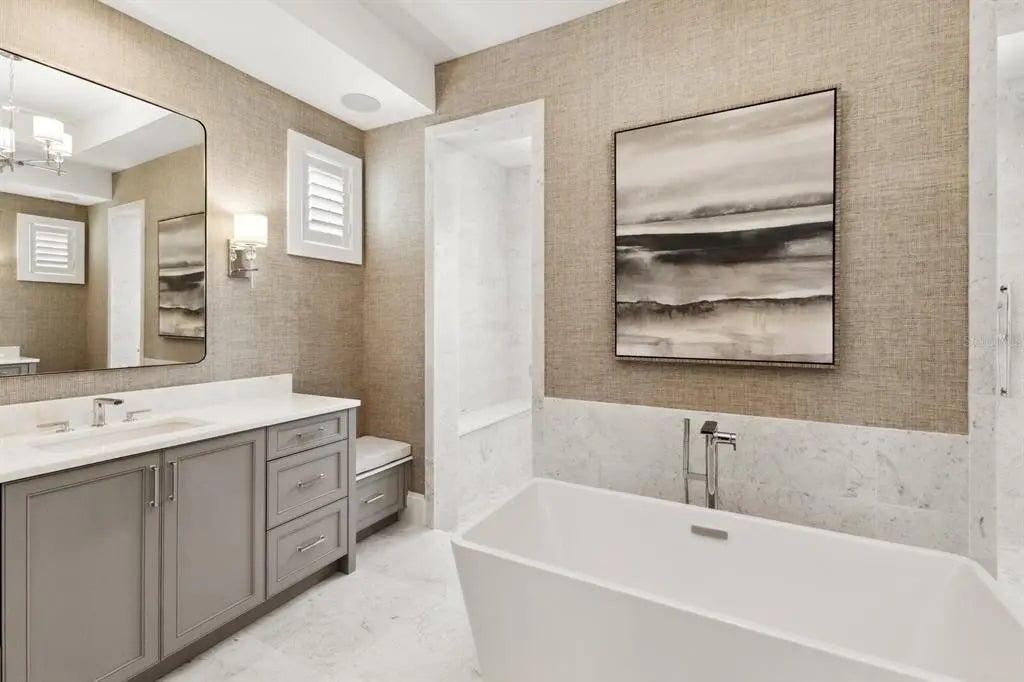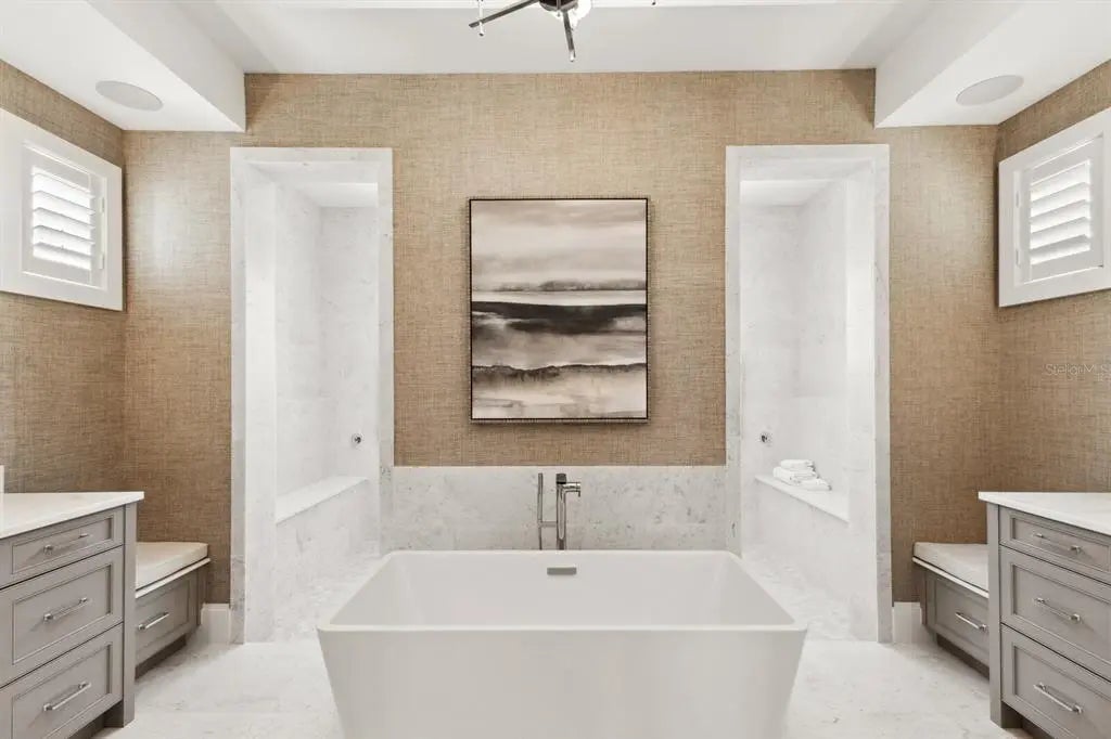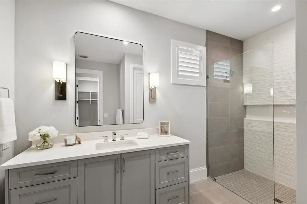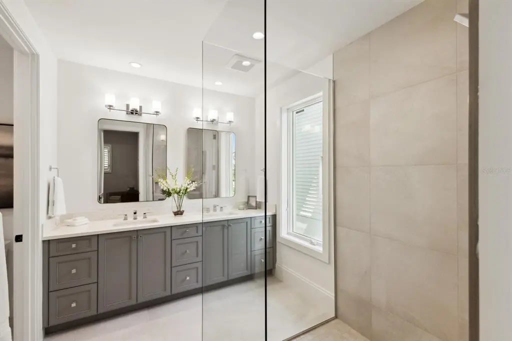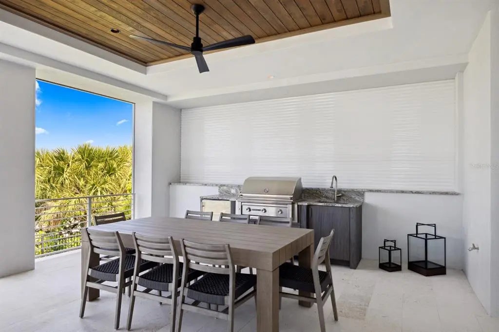 - Exterior FeaturesHurricane Shutters, Outdoor Grill, Outdoor Kitchen, Outdoor Shower, Sliding Doors