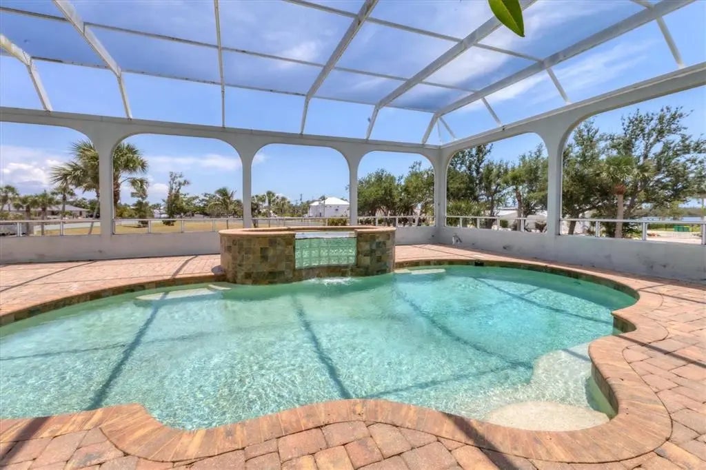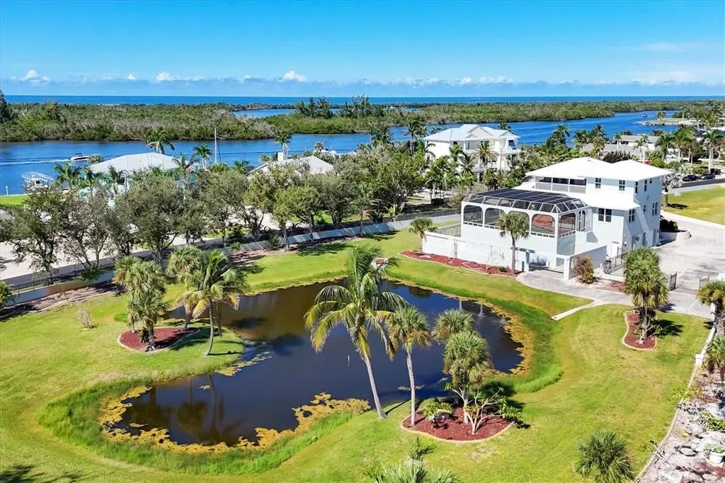 Significant renovation work has just been completed and new photos are now on MLS. Incredibly rare walled compound in the historic Vanderbilt developed neighborhood of Cape Haze. Beautiful Mediterranean style home is across the street from the Intracoastal Waterway with sensational partial views and a brand new standing seam metal roof. The spectacular property grounds include about 1.76 acres that could be subdivided for a second home to be built or split off. There's an expansive circular driveway, oversized three-bay garage, a private manicured lagoon with fountains, a gazebo/picnic area, 2,000 square foot screened lanai with an elevated pool and eight person spa that affords views of the water, all surrounded by 1,500 feet of privacy wall. The grand interior features about 3,500 sq.ft., three bedrooms and bathrooms, private office/den, 22 foot ceilings, and a completely renovated kitchen with custom cabinetry. Some drywall work is still needed in the garage ground level. Its a great situation for someone wanting to have a like-new home with their own custom design style and not have to wait more than two years for a new construction. The elegant neighborhood showcases tree-lined streets with towering banyans and large-acreage properties. A short walk to the Association kayak launch or quick boat trip to the 400 ft of private beach that's next to the Don Pedro State Park. Enjoy the ultimate coastal lifestyle being just minutes from Boca Grande, miles of pristine sandy beaches, three full service marinas, essential shopping, plentiful dining options, dozens of golf courses, and world-class fishing and boating.