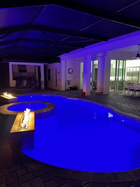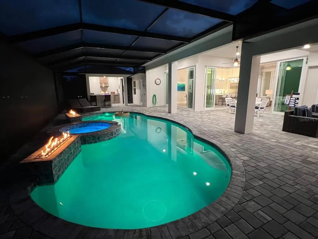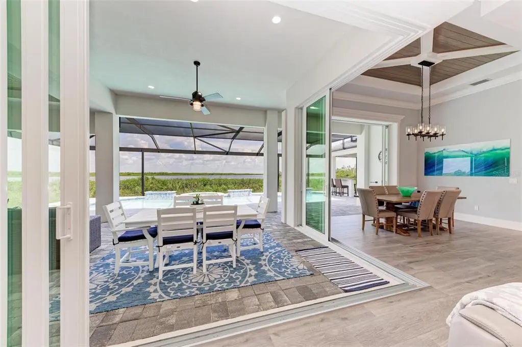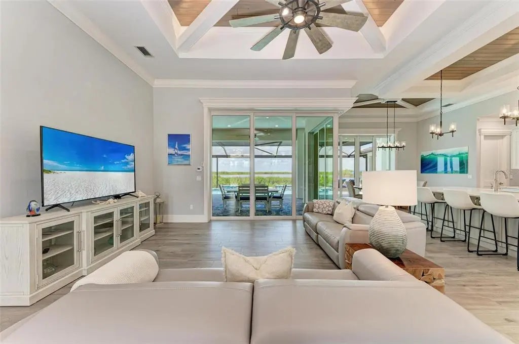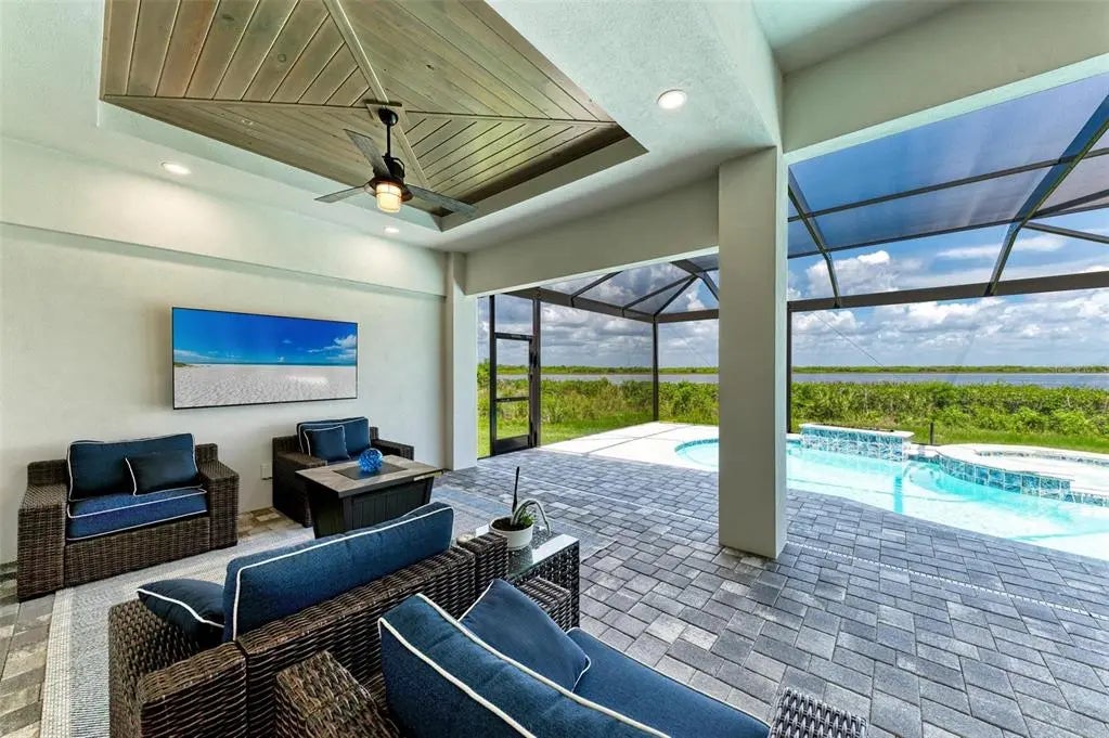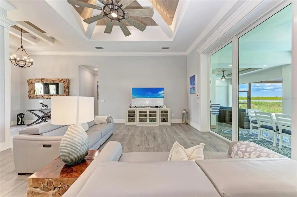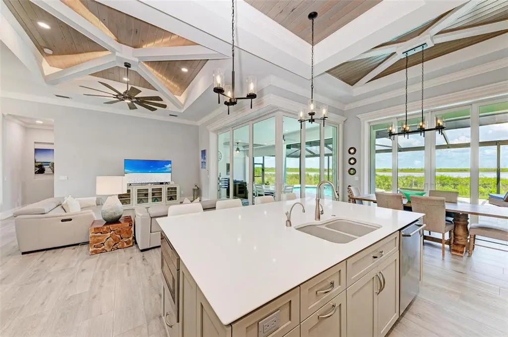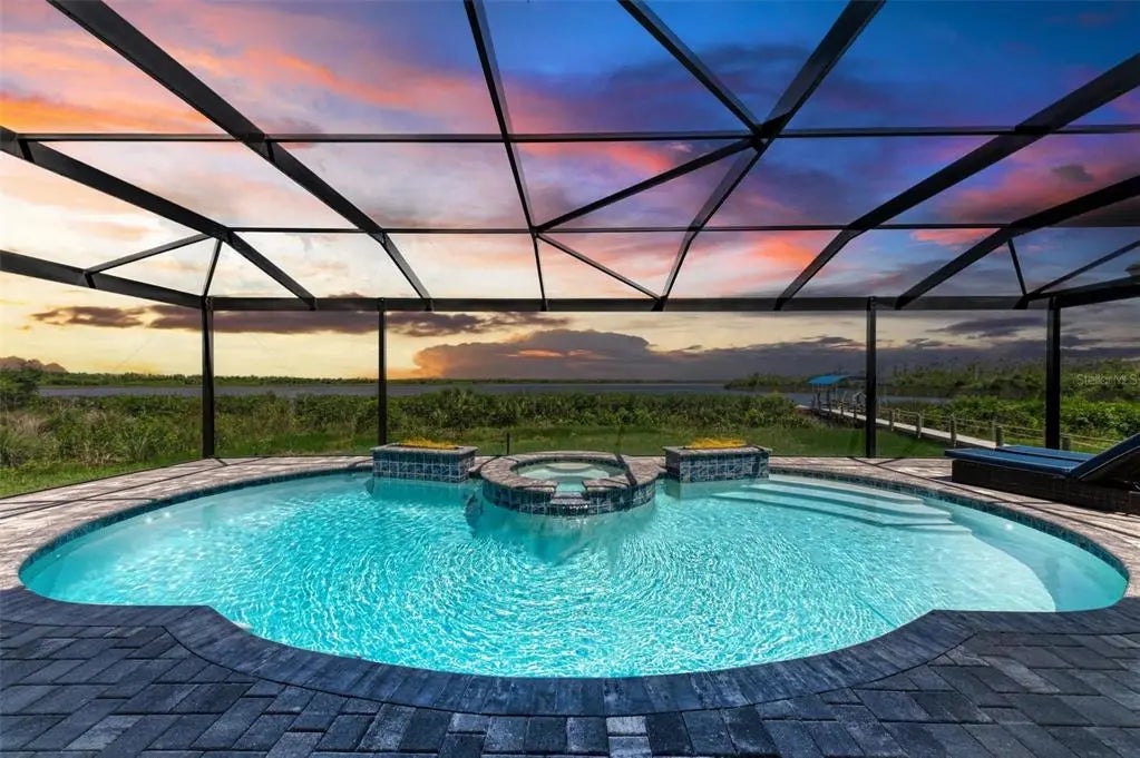 Why build when you can have this beautiful home now - shows like a model! ALL REASONABLE OFFERS CONSIDERED. IT IS A TURNKEY LISTING! This Luke Brothers model, THE GRAND CAYMAN, was voted by the judges and people viewing properties during Parade of Homes 2025, TO BE THE BEST IN CATEGORY FOR: SIZE,OUTDOOR LIVING, CURB APPEAL AND ACHITCTURAL DETAIL, MASTER SUITE, EXTERIOR FINISHES, and INTERIOR FINISHES. Here is luxury, resort style living welcoming you into this unique property that offers the epitome of waterfront living. This slice of perfection is sited on a cul-de-sac key lot with 175 feet of water frontage offering expansive, unobstructed views of the lagoon and preserve. This private, waterfront haven offers a home constructed by one of southwest Florida's esteemed builders and showcases unique architectural details and quality craftsmanship. No detail has been spared in this well designed home which highlights the unique features and luxurious, upscale amenities of the property. Elegant tray and volume ceilings adorned with wood inlays add sophistication and warmth to the living spaces. The well appointed kitchen is a chef's delight for planning and preparing meals with 42 inch wood cabinets, quartz countertops, induction stove, built-in pantries, oversized 5 ft refrigerator/freezer, and large quartz-topped island. Owners' suite offers you a private sanctuary with spa-like amenities and custom designed his/her walk in closet. Open any of the multiple sliders and enter the enclosed oasis where a saltwater pool with integrated spa awaits, surrounded by fire features and a stylish outdoor kitchen is positioned within the 11 x 14 Gazebo area complete with counter top seating and built in grill for ultimate relaxation and outdoor gatherings. This integration of interior and exterior environments offers a bright and airy atmosphere within and wonderful opportunities for observing mother nature at her finest. View the meticulously crafted exterior boasting a tile roof, impact doors and windows, accent lighting, security cameras for peace of mind, curbing, gutters and more. Additional features include pavers lining the driveway and tiled porch, along with corbels adding architectural charm. Awaken to glorious sunrises and retire to radiating sunsets. A 140-foot maintenance free composite walkway leads to the private dock equipped with a 10,000-pound lift with provisions for water and electricity, making it ideal for boating enthusiasts and enjoying the waterfront lifestyle. Spend your day boating or strolling along one of the nearby sandy beaches created by southwest Florida's coastline and also just minutes away from a top destination for world class tarpon fishing. This waterfront retreat embodies luxury living at its finest, offering a rare opportunity to own a slice of paradise with dazzling views in southwest Florida. GRADY WHITE CENTER CONSOLE ALSO AVAILABLE FOR SALE.