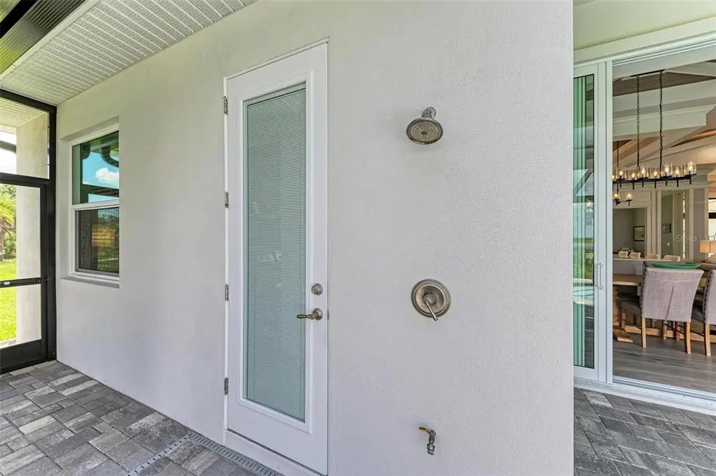- Exterior FeaturesIrrigation System, Lighting, Outdoor Grill, Outdoor Kitchen, Outdoor Shower, Rain Gutters, Sliding Doors