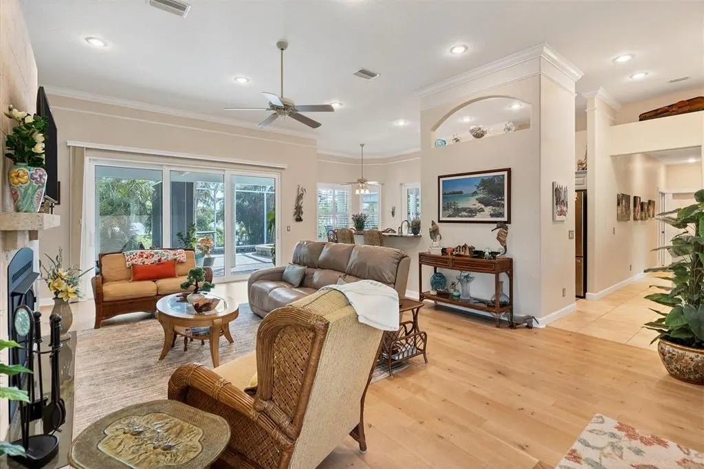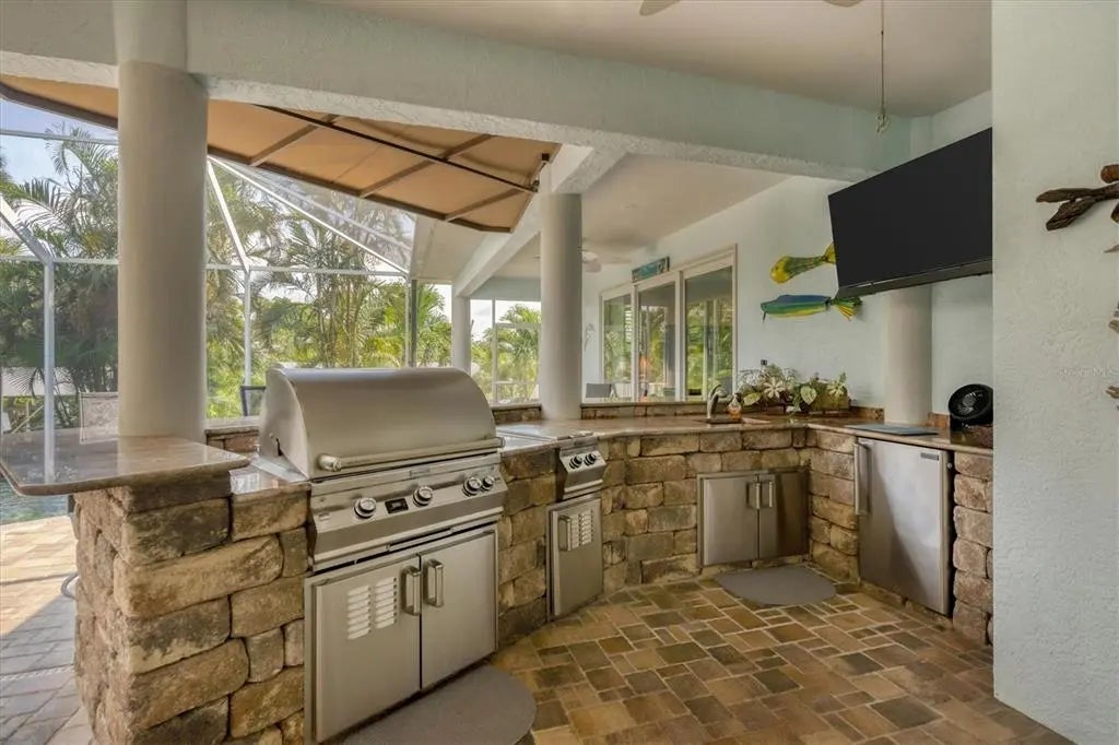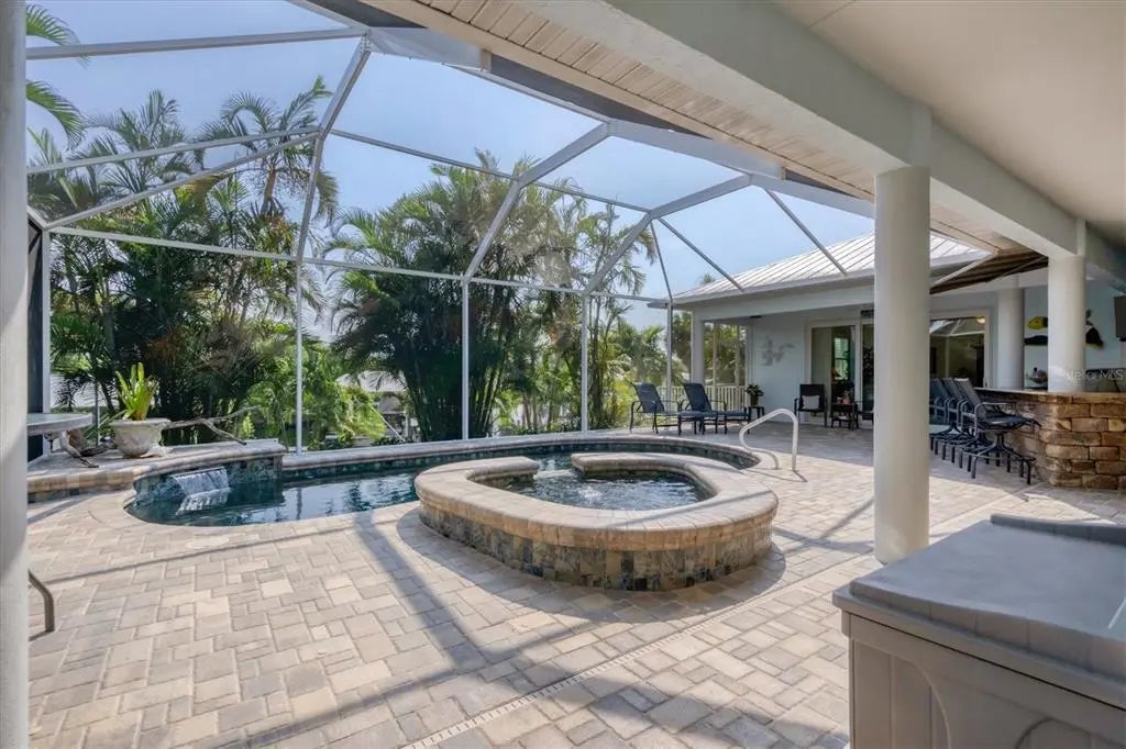 Imagine your own tropical oasis just minutes by boat to the Intracoastal Waterway and the stunning Gulf of Mexico. This exceptional waterfront home, with Pool Cabana/ In-Law Suite situated on an oversized lot of .64 acres, is a true paradise, surrounded by mature landscaping and designed for all your boating needs. This home has sustained very minimal damage in last few hurricanes and took on no water in Helene or Milton. * Key West Style Home * Minutes to Boca Grande Beaches and World Class Tarpon Fishing * 2 Boat Lifts (10K and 15K with Roof Canopies) * New 140' Seawall * Metal Roof * Insulation Package * PGT Impact Windows/Sliders and Impact Garage Door * Multi Generational Living Space with Full Kitchen and Bath * Outdoor Kitchen (Fire Magic) * Custom Pool/Spa with Heater * White Oak Flooring * Coral Wrapped Fireplace As you approach the front door via the inviting circular driveway, you'll be captivated by the charming cupola, elegant metal roof, and welcoming front porch that embody the essence of coastal living. Step inside to discover a spacious living area that seamlessly blends luxury and comfort, featuring exquisite white oak flooring, soaring high ceilings, crown molding, and three-panel impact sliding doors that fill the space with natural light. A stunning fireplace encased in coral adds warmth and character to this inviting gathering space. To the left, the den area provides a perfect retreat, while the stairway leading to the cupola offers a unique vantage point to take in the breathtaking views. The heart of this home is undoubtedly the chef's kitchen, showcasing level 5 granite countertops, under-cabinet lighting, abundant counter and cabinet space, a convenient bar top, and a cozy breakfast nook overlooking the serene lanai and sparkling pool area. Step outside to your jaw-dropping outdoor oasis, where you’ll want to spend most of your time. The recently renovated saltwater pool and spa are the centerpiece of this luxurious retreat, complemented by a fully equipped outdoor kitchen, a half bath, and a charming pool cabana that doubles as an in-law suite. The cabana features a kitchenette, a full bath, and three additional panels of impact PGT sliders, ensuring comfort for guests and family alike. The waterfront features are truly exceptional, providing the ultimate setup for water enthusiasts. Your private dock area boasts two covered boat lifts offering ample space for all your water-based toys. Additionally, a pre-plumbed spot for an ice maker conveniently located near the main house enhances your outdoor entertaining experience. This setup is a rare find and is sure to impress even the most discerning buyers. Inside, the expansive master suite offers direct access to the lanai and pool area, creating a perfect retreat. The roman walk-in shower, soaker tub and generous storage space make this sanctuary both luxurious and practical. The guest rooms, situated on the opposite side of the home, provide privacy for both you and your visitors. As an added bonus, HOA membership includes dockage and private beach access to Knight Island, providing a perfect escape just a stone’s throw away. This coastal gem seamlessly combines sophistication, comfort, and exceptional outdoor living, making it the perfect place to call home. Don’t miss the opportunity to experience the ultimate in Florida waterfront living—schedule your private tour today!