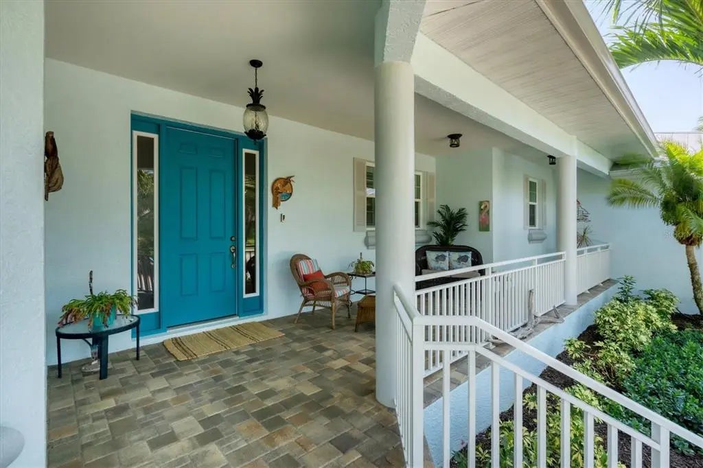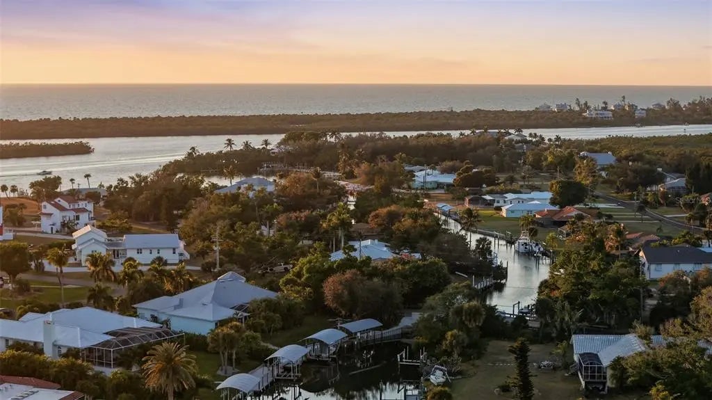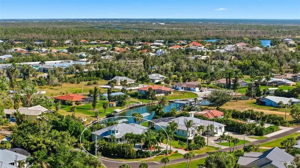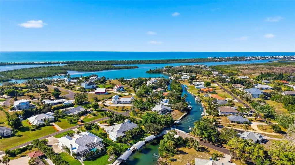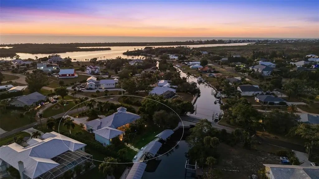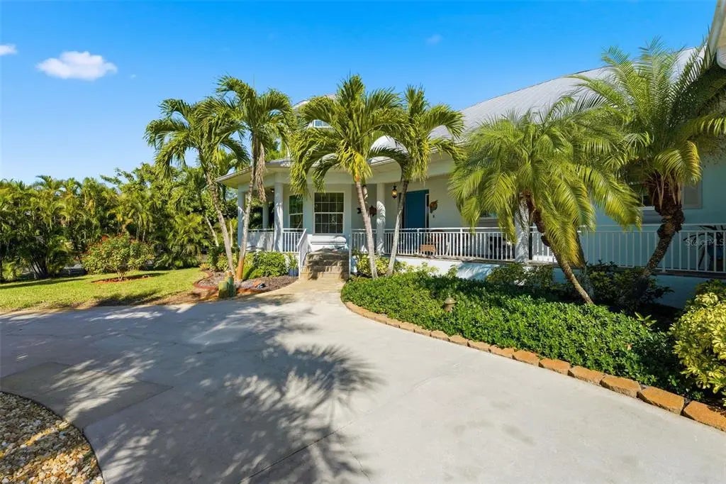 Experience the ultimate in Florida waterfront living with this exceptional Key West–style residence, ideally located just minutes from area beaches on Boca Grande and Manasota Key, and offering bridgeless boating access to the Intracoastal Waterway and the stunning Gulf of Mexico. Set on an oversized .64-acre lot, this private tropical oasis is surrounded by mature landscaping and thoughtfully designed for boating, entertaining, and multigenerational living. The waterfront is truly the star of the property, featuring a brand-new 140’ seawall, a private dock, and two covered boat lifts (10K & 15K) with roof canopies, providing an exceptional setup for serious boaters. With direct, unrestricted access to open water and world-class fishing near Boca Grande, this location delivers the best of Southwest Florida’s coastal lifestyle. As you approach the residence via the circular driveway, you’re welcomed by a charming front porch, distinctive cupola, and a metal roof with upgraded insulation package, setting the tone for the coastal elegance found within. Inside, white oak flooring, soaring ceilings, crown molding, and expansive PGT impact windows and sliding doors, along with an impact garage door, allow natural light to fill the living spaces. A striking coral-wrapped fireplace anchors the main living area, creating a warm and inviting atmosphere. The den offers a versatile retreat, while the stairway to the cupola provides a unique vantage point with elevated views. A resort-style outdoor living area invites year-round enjoyment. The recently renovated custom saltwater pool and spa with heater serve as the centerpiece, complemented by a fully equipped Fire Magic outdoor kitchen, half bath, and a charming pool cabana/in-law suite complete with kitchenette, full bath, and impact sliders—ideal for guests or multigenerational living. This expansive outdoor setting creates a seamless connection between the home, pool, and waterfront. The chef’s kitchen is both beautiful and functional, featuring Level 5 granite countertops, under-cabinet lighting, abundant cabinetry, bar seating, and a breakfast nook overlooking the lanai, pool, and tranquil waterfront beyond. The primary suite is a private sanctuary with direct access to the lanai and pool area, offering a spa-like bath with a roman walk-in shower, soaking tub, generous storage, and refined finishes throughout. Guest bedrooms are thoughtfully located on the opposite side of the home, ensuring comfort and privacy for all. As an added bonus, HOA membership includes dockage and private beach access to Knight Island, providing a secluded island retreat just moments away. This remarkable coastal property combines luxury, functionality, and unparalleled outdoor living—schedule your private tour today and discover waterfront living at its finest.