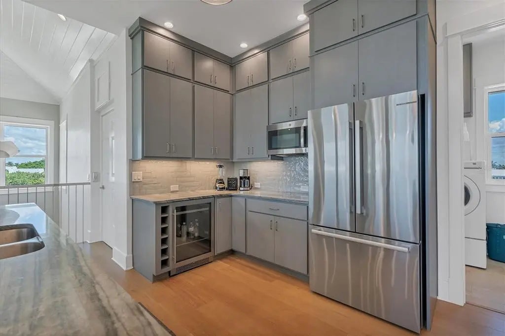 - AppliancesBar Fridge, Cooktop, Dishwasher, Disposal, Dryer, Electric Water Heater, Ice Maker, Microwave, Range, Refrigerator, Washer, Wine Refrigerator