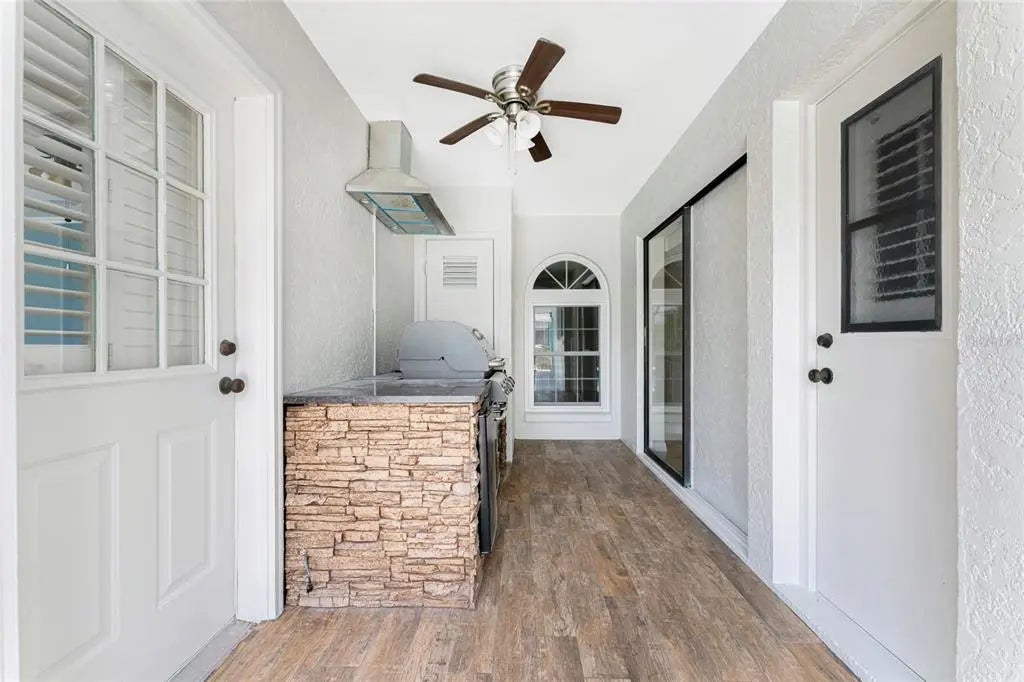 - Exterior FeaturesHurricane Shutters, Irrigation System, Outdoor Kitchen, Outdoor Shower, Sliding Doors
