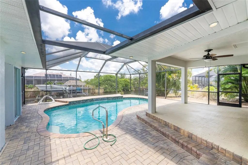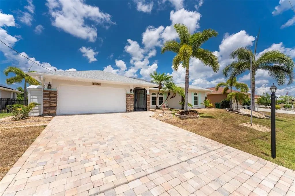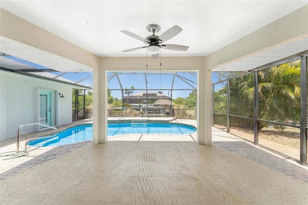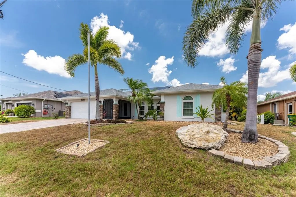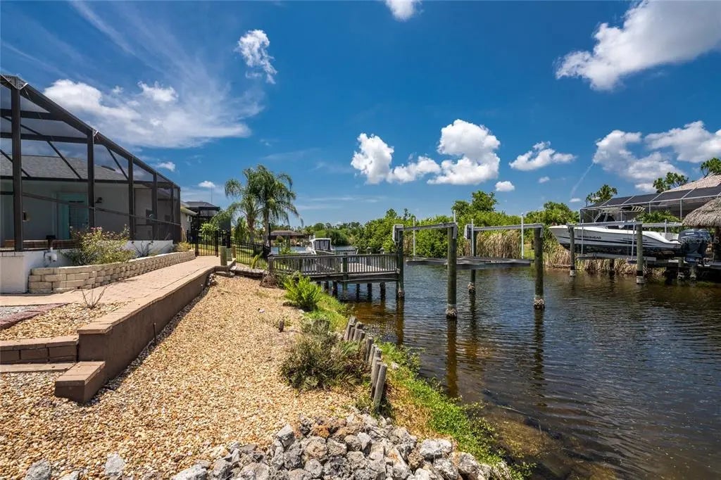 This lovely GULF ACCESS, HEATED POOL, DOCK & LIFT, IMPACT WINDOWS PLUS A BONUS ROOM (4th bedroom) OFF POOL AND 250 LB PROPANE TANK, GAS STOVE - is Located in beautiful South Gulf Cove (HOA OPTIONAL). Enjoy our Beautiful waterways that take you straight to the Gulf of Mexico. 8 parks to explore, Bike Trails, 10' sidewalks on all main roads, bird sanctuary, spot beautiful eagles flying overhead... The list goes on. Gorgeous sunsets and within minutes of multiple beaches. This is how paradise begins for you. Working from home..may be a struggle with all the gorgeous views and the beaches being just minutes away! This home features great upgrades that will bring you comfort: a New Roof, a New efficient AC system, a New pool heater, Newly installed *IMPACT WINDOWS, Easy close accordion shutters for all exterior doors, an irrigation system, state-of-the-art pool pump system and to save on energy cost; *Solar Panels, *250lb buried Propane tank (stove, dryer, water heater ran on). Travertine tile fills the home throughout. The kitchen has white cabinets with travertine backsplash and granite countertops, giving it a Mediterranean/Coastal vibe. A resort-style saltwater pool with a waterfall and partially covered lanai is just the beginning of your outdoor life. The home has an outdoor mini kitchen for easy entertaining. If fishing is a favorite pastime, sitting down on your dock has never been easier, just cast and wait! (The dock has water and electricity down to it) Having your boat on your lift will give you peace of mind and super easy access to go for a ride anytime you want. As an added feature, there's an air-conditioned bonus room just off the back lanai/pool area of the house that can be a pool room, guest room, or a future office - either way, this home is located perfectly for gulf access, and close proximity to all the conveniences we've grown accustomed to. Boat living has never been easier. Some of the inside features are a pool bath, a large kitchen, a breakfast bar and granite throughout, 2 living room spaces, and lots of space for entertaining if that's your thing. Huge master and all 3 bedrooms have large walk-in closets. The back living room area has access to the covered lanai and has impact "zero" sliders that will give the outdoor/indoor living experience in the wintertime. This home is centrally located between Sarasota and Fort Myers, easily accessible to I75 and nearby airports, and of course just minutes from multiple beaches, shopping, and more. HOA is optional Come explore all that SW Florida has to offer. Hope to see you soon