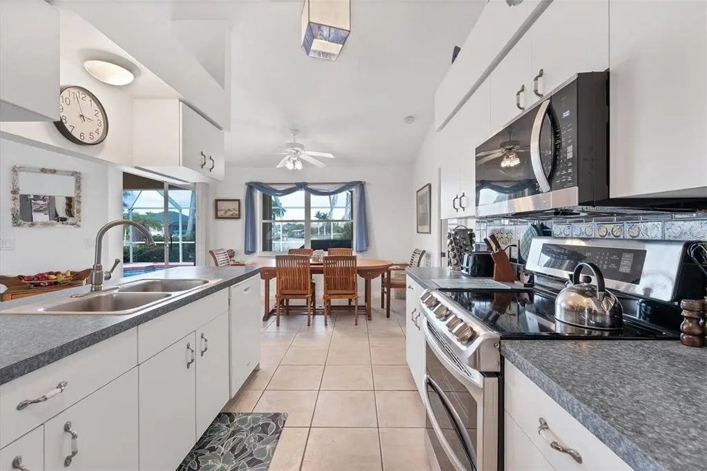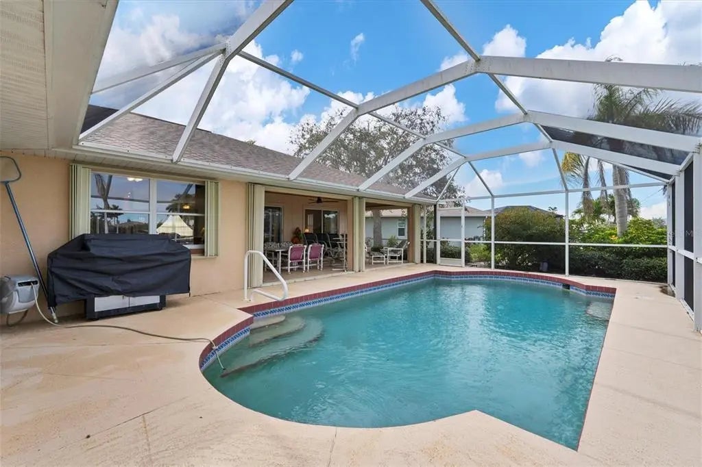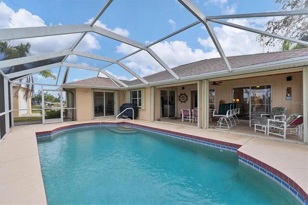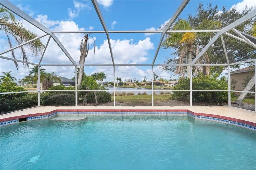 LOCATION * LOCATION * LOCATION * WATERFRONT * POOL HOME * OVERSIZED TIP LOT * 166 ft. of CEMENT SEA WALL * DOCK AND 6K LIFT * SPECTACULAR WATER VIEW !!! In the WATERFRONT BOATING Community of SOUTH GULF COVE With Boating access to the Gulf of Mexico and Surrounding ISLANDS. Only 1 Bridge to a Quick and Easy Out to the Lagoon and Charlotte Harbour. This Home features 3 Spacious Bedrooms, 2 full Baths, OPEN FLOOR PLAN, Vaulted Ceilings, Sliders to LANAI and Spacious POOL area. Living Room has nice Tile floors, Ceiling fans and Light Fixtures. Kitchen has STAINLESS STEEL appliances to include Refrigeator, NEW LG STOVE, NEW LG MICROWAVE, Large PANTRY Closet, Dishwasher, Double Sink, Nice Countertops and Cabinets. BREAKFAST NOOK with large picture window to maximize your WATER VIEW and Sliders to Lanai. Split GUEST BEDROOMS and Full Bath with Tub and Linen Closet. Primary Suite has a Large Walk-in Closet, Vanity, Linen closet, Tiled Shower, NEW plank flooring and Sliders to Lanai. A sparkling SALT WATER POOL to Enjoy and covered outdoor dining and entertaining any day of the year. There is a 16’ BOAT DOCK with WATER, ELECTRIC and 6K LIFT, Nice Spacious back yard with Mature Landscaping and Another very special feature of this property is the 504 sq. feet tandem DETACHED GARAGE, which includes an 8’ tall overhead door which can accommodate your recreational vehicles. This home has FULL HURRICANE PROTECTION with ACCORDION SHUTTERS INSTALLED in 2019, a NEW OVERHEAD DOOR in the main garage installed 2019, NEW ROOF 2016, POOL PUMP 2019 and MORE features include...Screened Garage Door, NEW A/C and HEAT PUMP, NEW WASHER and DRYER. SOUTH GULF COVE is only minutes away from Southwest FLORIDA BEACHES in BOCA GRANDE and MANASOTA KEY with boating access to the Gulf of Mexico and Surrounding ISLANDS. Community offers several nice parks, boat ramp,marinas and a yacht club. With several Golf Courses, WORLD CLASS FISHING, Shopping and Great Restaurants only minutes away!!! HOA is OPTIONAL!!! EXPERIENCE the FLORIDA LIFESTYLE !!!