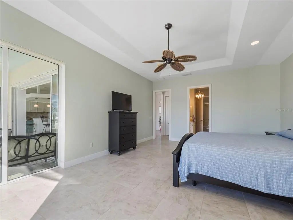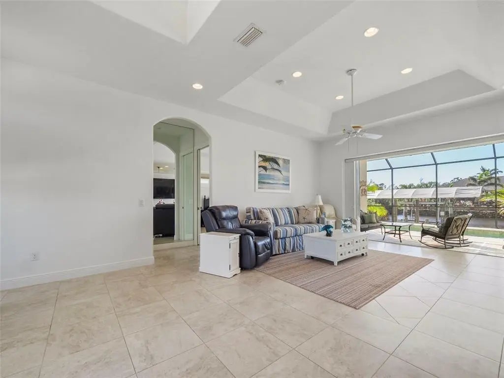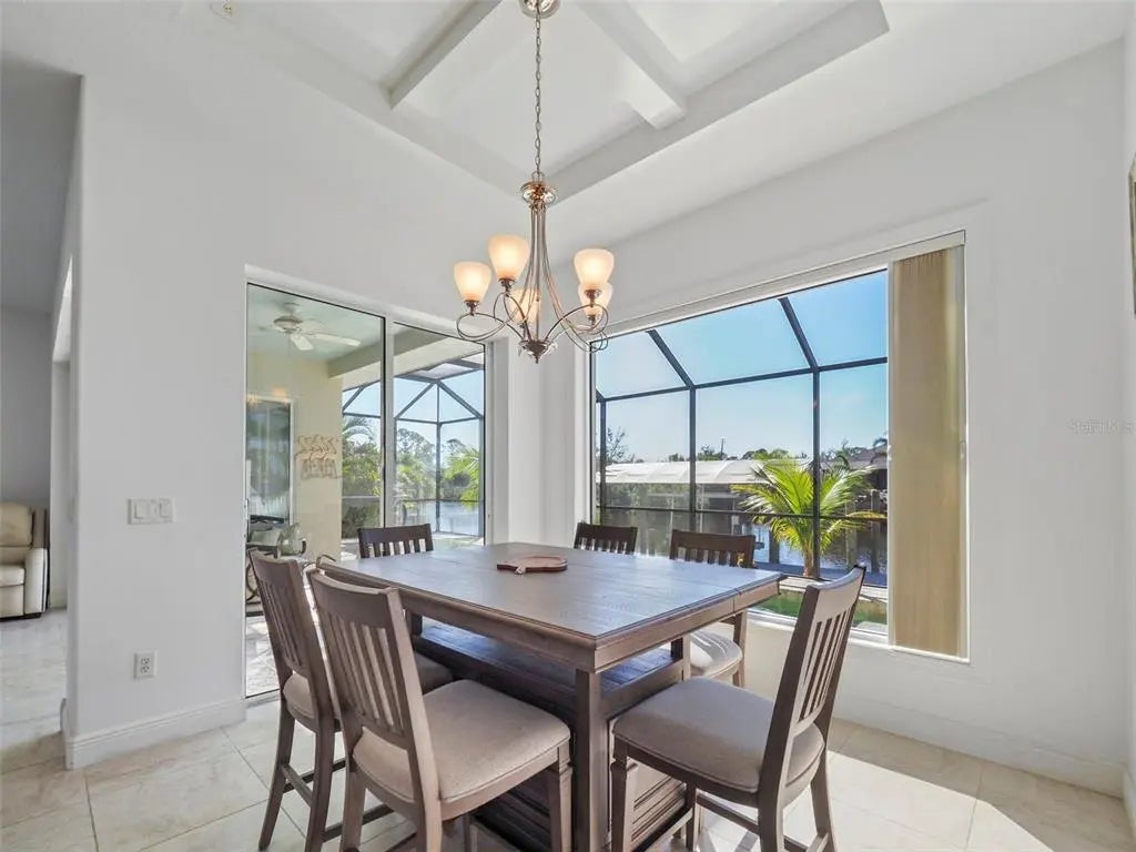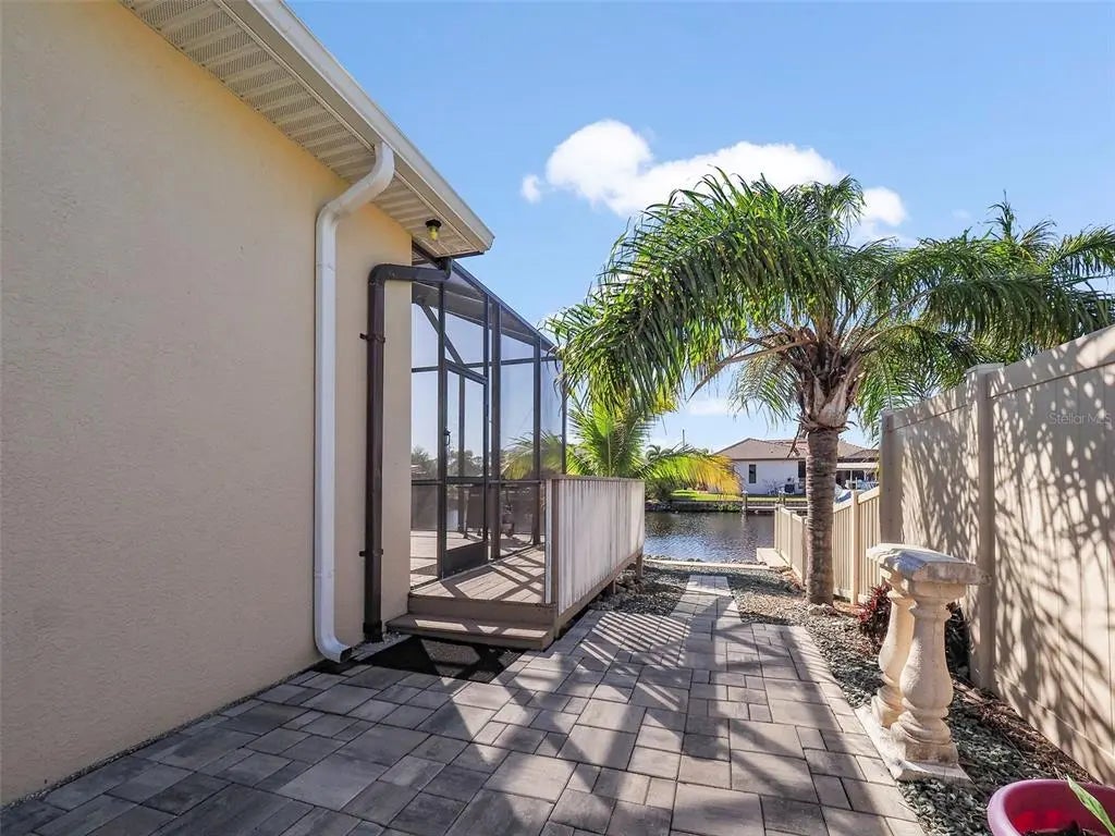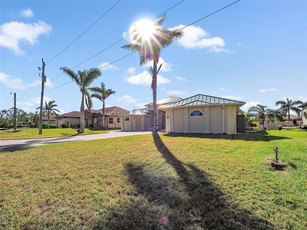 Welcome home to this custom built house nestled along the serene Keystone waterway in the waterfront community of South Gulf Cove. This unique home is being offered turn-key minus a few personal items. The property is meticulously maintained and features an exterior boasting a metal roof (2023) and a yard adorned with lush palm trees and large driveway set with pavers. The two car garage provides an area workshop while an additional entrance allows room for storage or your golf cart. As you approach, you’ll notice the tiled porch encompassed with a Tuscan balustrade and the leaded glass double entry doors that beckon you inside. Upon entering, you’ll notice soaring ceiling lines creating an open, bright, airy atmosphere within that combines comfort and functionality in a picturesque setting. The home’s open layout flows seamlessly from room to room, with sweeping views of the water from most areas. The great room with its prominent 10’ ceiling provides a breathtaking waterfront view via pocket sliders. A gourmet kitchen featuring under-cabinet lighting, wood cabinets, stainless steel appliances, breakfast bar, a stylish tile backsplash, and gleaming granite countertops is perfect for both everyday meals and entertaining. The cozy breakfast nook, with its coffered ceiling, aquarium window and sliders to outside, offers a charming spot to start your day while taking in the surroundings of the pool and waterway beyond. The owners’ suite features sliders to the pool area, tray ceiling, and ensuite bath offers a peaceful retreat after a day’s activities. Highlights of the inside utility room feature the washer, dryer, utility sink, additional pantry, and wood cabinets. Outside, a screened lanai/pool area invites you to relax and enjoy the tranquil atmosphere, while the lap pool with a sun shelf provides the ideal space for a refreshing swim. Lush palm trees dot the landscape, adding tropical beauty, and the canal irrigation system ensures the lush greenery remains vibrant year-round. This home is a true sanctuary, blending indoor/outdoor environments and modern amenities with waterfront charm.