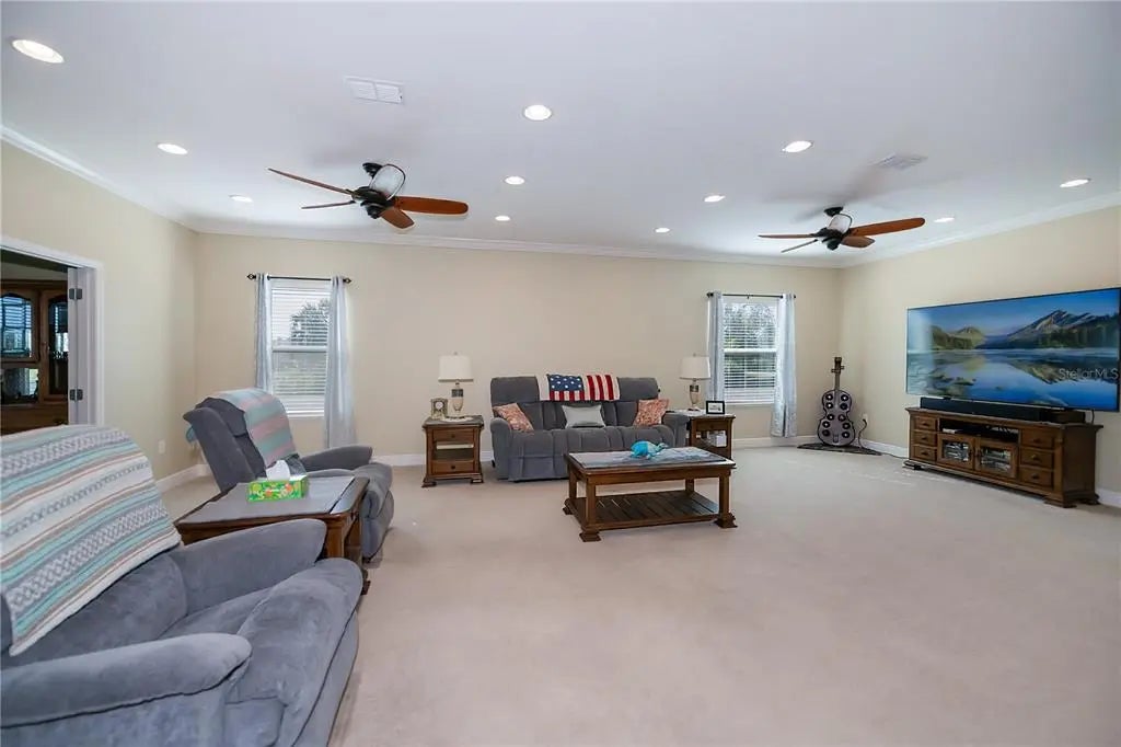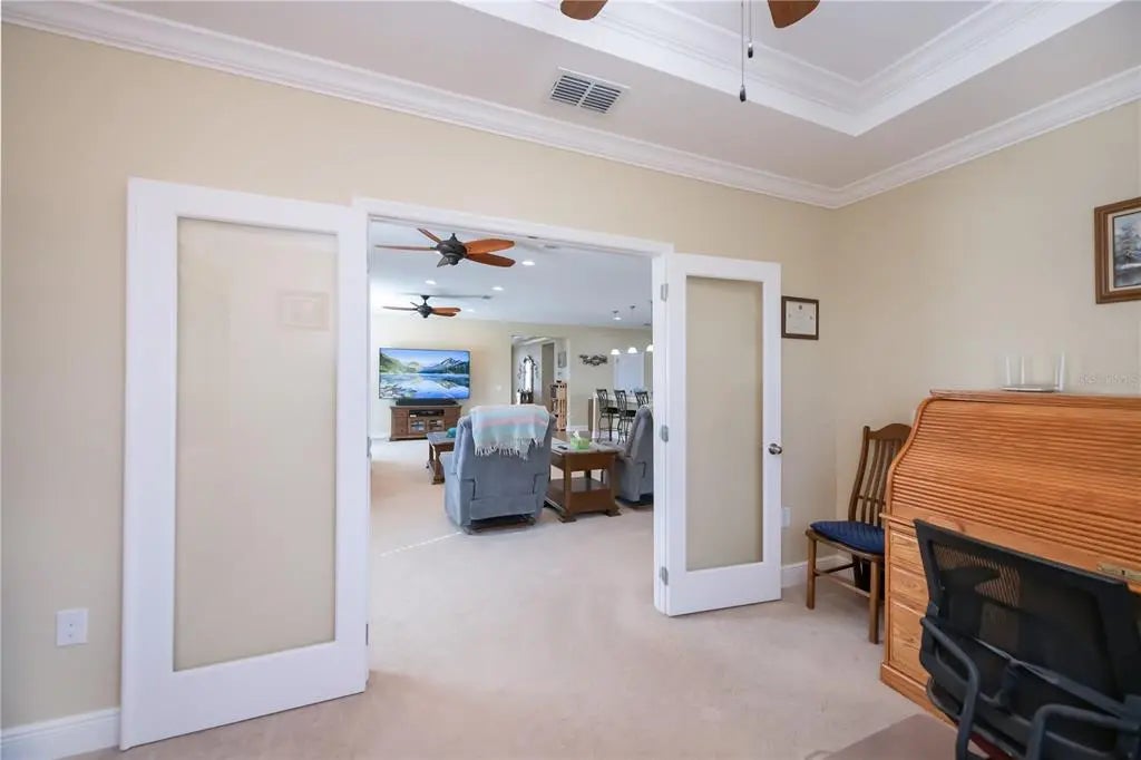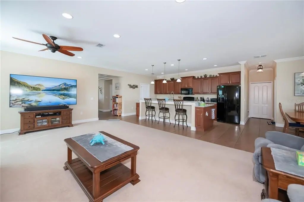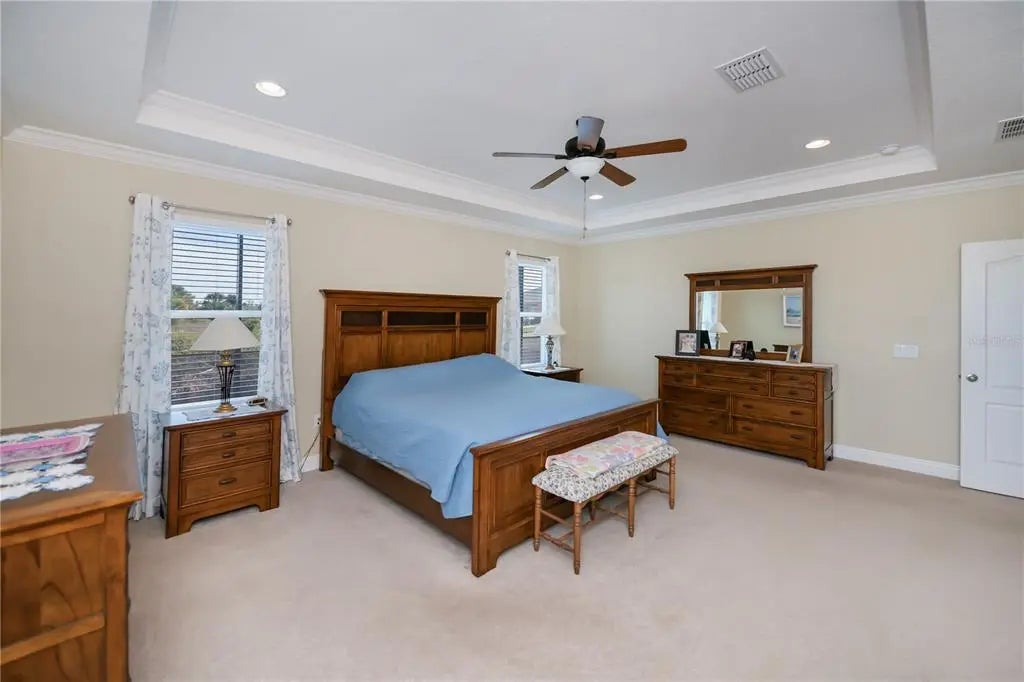 - Interior FeaturesCeiling Fan(s), Crown Molding, Eating Space In Kitchen, High Ceilings, Kitchen/Family Room Combo, Open Floorplan, Primary Bedroom Main Floor, Split Bedroom, Tray Ceiling(s), Walk-In Closet(s)