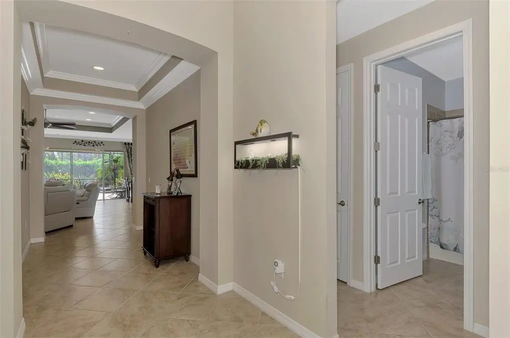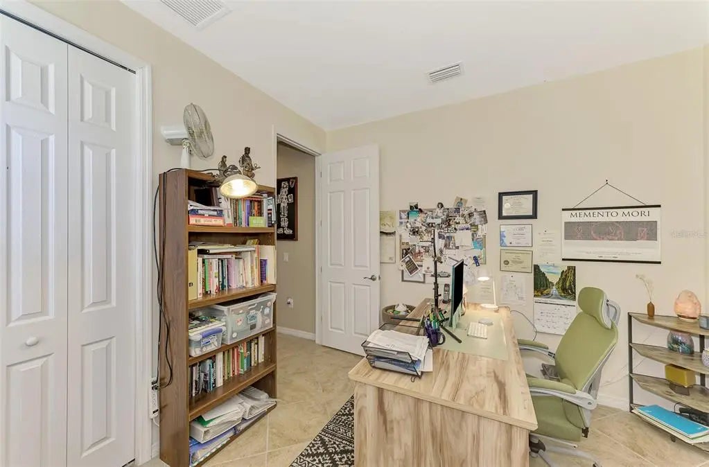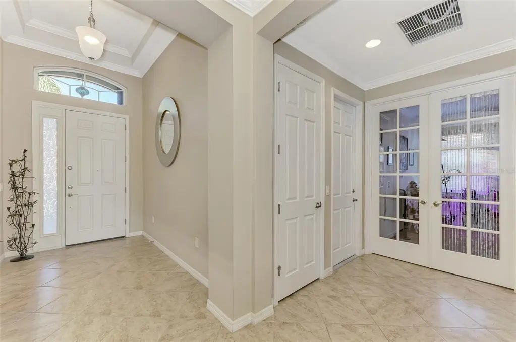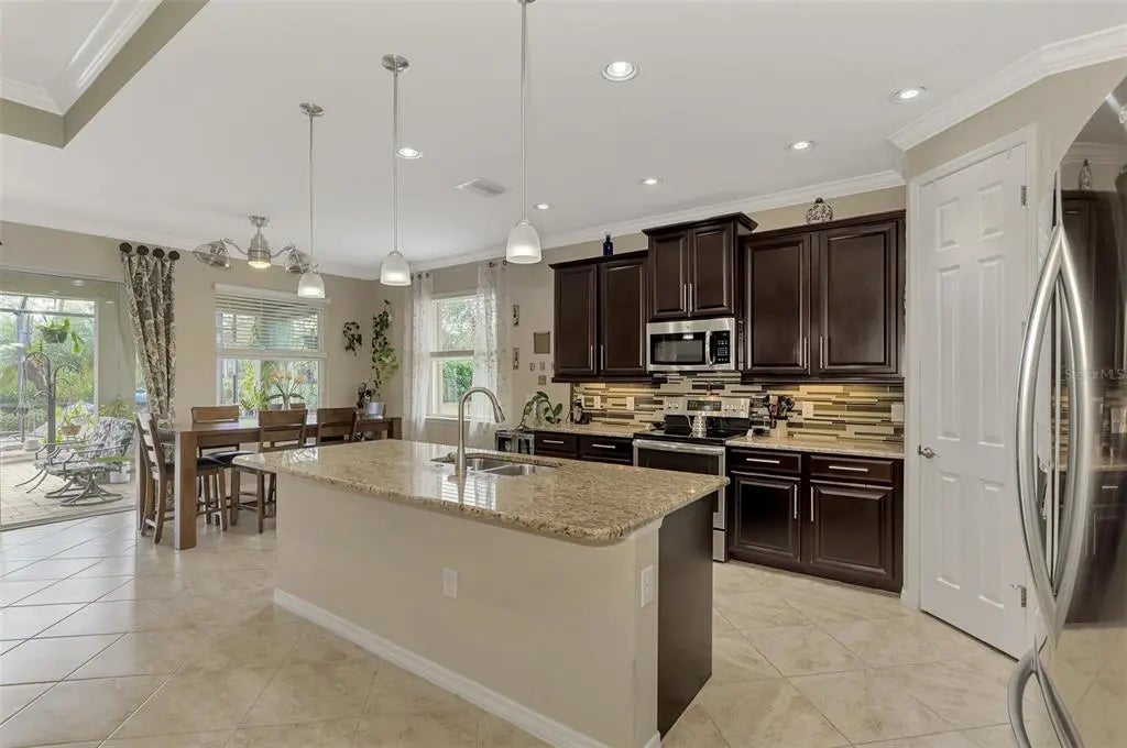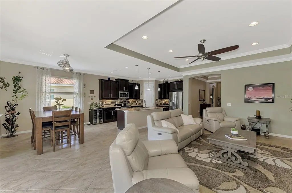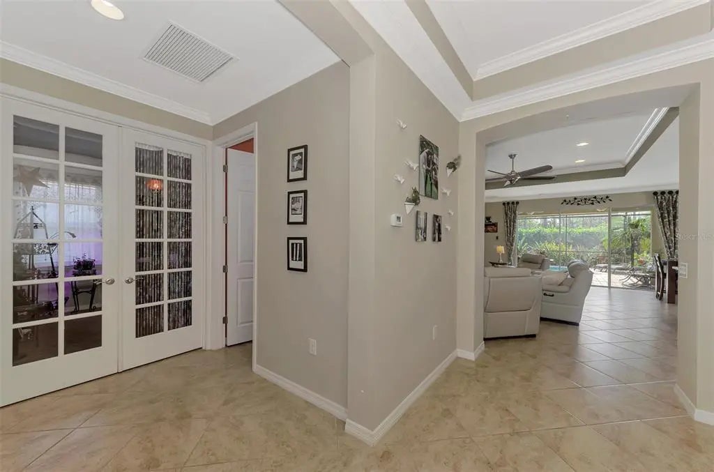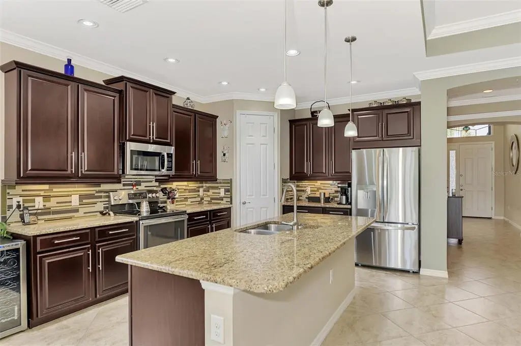 Under contract-accepting backup offers. Stunning Pool Home in the Desirable Community of Caribbean Village in Venice, FL. Welcome to 11479 Blackfin St, a beautifully designed Edison floor plan with 3-bedrooms, 2-bathrooms, plus a DEN/FLEX ROOM WITH GLASS DOUBLE DOORS, offers a perfect blend of comfort, functionality, and modern elegance. Enjoy the Florida lifestyle at its finest with your very own PRIVATE POOL, complete with a HEATER, WATER FEATURE, and a large screened lanai – perfect for outdoor relaxation and entertaining. The spacious kitchen is a chef's dream, featuring a large island that comfortably seats 4 and opens to the living and dining areas, making it ideal for family gatherings and socializing. GRANITE COUNTERTOPS IN KITCHENS AND BATHS, UNDER CABINET LIGHTING, GLASS BACKSPLASH, CROWN MOLDING, 8-FOOT DOORS, and LARGE DIAGONAL TILE FLOORING add a touch of luxury. The home is equipped with ceiling fans for comfort and upgraded features such as blinds on all windows and a UV LIGHT SANITIZER FOR THE HVAC SYSTEM. The pool area is a true standout, with the POOL PUMP REPLACED in 2020 and the POOL HEATER INSTALLED in 2018. Additional features include UPGRADED ACCORDION HURRICANE SHUTTER AND ROLL-DOWN STORM SCREEN FOR THE LANAI AND FRONT ENTRANCE (a $20K Value), whole-house gutters, and a surge protector for the electrical panel. For added convenience, the home is PRE-WIRED FOR A GENERATOR and a GENERATOR INTERLOCK SYSTEM IS ALREADY IN PLACE. The living room, entryway, master bedroom and bathroom have TRAY CEILINGS for added elegance. The property also boasts EPOXY FLOORING IN GARAGE and landscape edging for a polished look. PATIO FURNITURE INCLUDED. Located JUST 7 MILES FROM THE BEAUTIFUL BEACHES OF VENICE and offering easy access to I-75, this home is in a prime location (NOT IN A FLOOD ZONE) close to golfing, restaurants, Wellen Park, and historic downtown Venice. Enjoy the best of Florida living in a maintenance-free community with two gated entrances, a community pool with clubhouse, fitness center, and bocce ball courts. With low HOA fees and no CDD, this home provides both luxury and affordability. Don't miss out on this opportunity—schedule your showing today and be sure to check out the virtual tour, which includes a walking tour of Venice! This home is move-in ready and waiting for you to make it your own. Lanai furniture on site, master bedroom furniture, TV's and brown desk in guest bedroom will convey at no charge. Cameras on site.