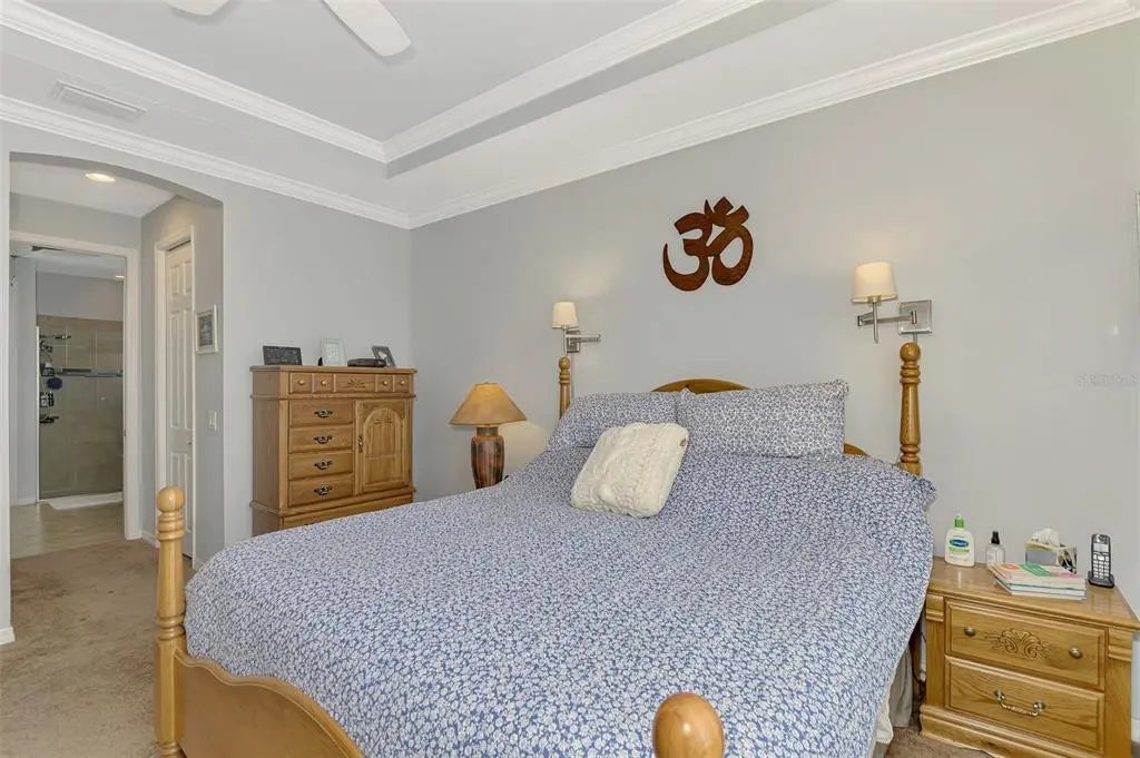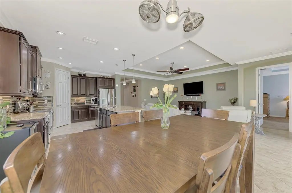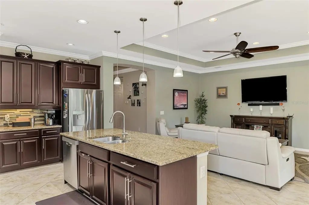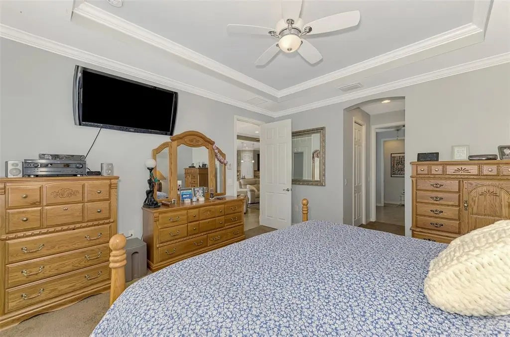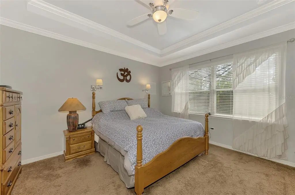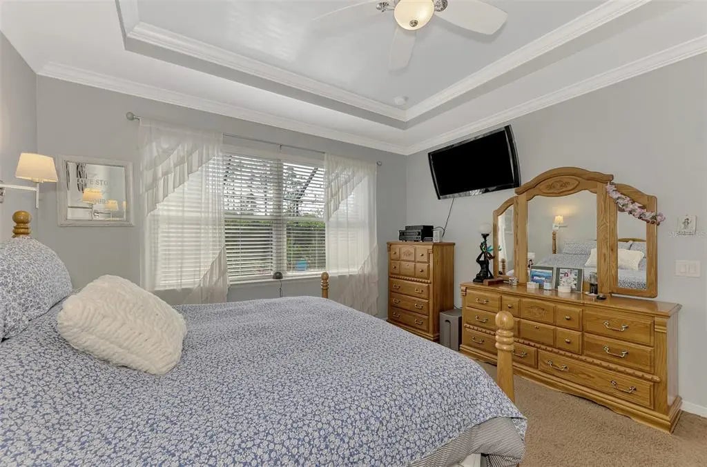 - Interior FeaturesCeiling Fan(s), Crown Molding, High Ceilings, Kitchen/Family Room Combo, Open Floorplan, Solid Wood Cabinets, Stone Counters, Thermostat, Tray Ceiling(s), Walk-In Closet(s), Window Treatments