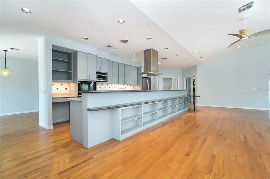 - Interior FeaturesCeiling Fan(s), Eating Space In Kitchen, Elevator, High Ceilings, Living Room/Dining Room Combo, Open Floorplan, Primary Bedroom Main Floor, Skylight(s), Solid Surface Counters, Solid Wood Cabinets, Split Bedroom