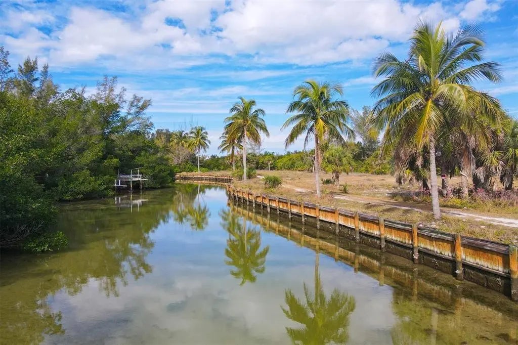EXCEPTIONAL WATERFRONT LOT IN PINFISH POINT on DON PEDRO ISLAND! Located in the exclusive Pinfish Point community, this premium building lot sits on a private peninsula surrounded by the Bocilla Waterway, offering a truly unique and tranquil island setting. This lot comes with a dock already constructed, allowing for quick and easy access to the Intracoastal Waterway via one bridge, and from there, you can reach the Gulf of America through Stump Pass in just minutes. Whether you're an avid boater or a passionate angler, this location provides excellent boating and fishing opportunities right from your backyard. Build your dream island home with one of our expert island builders and enjoy breathtaking Gulf views, spectacular sunsets, and the soothing sound of waves from your own porch. Accessible only by private car ferry, this exclusive community ensures a laid-back island lifestyle, where you can embrace the Old Florida charm while still enjoying the convenience of nearby shopping, dining, and everyday essentials.